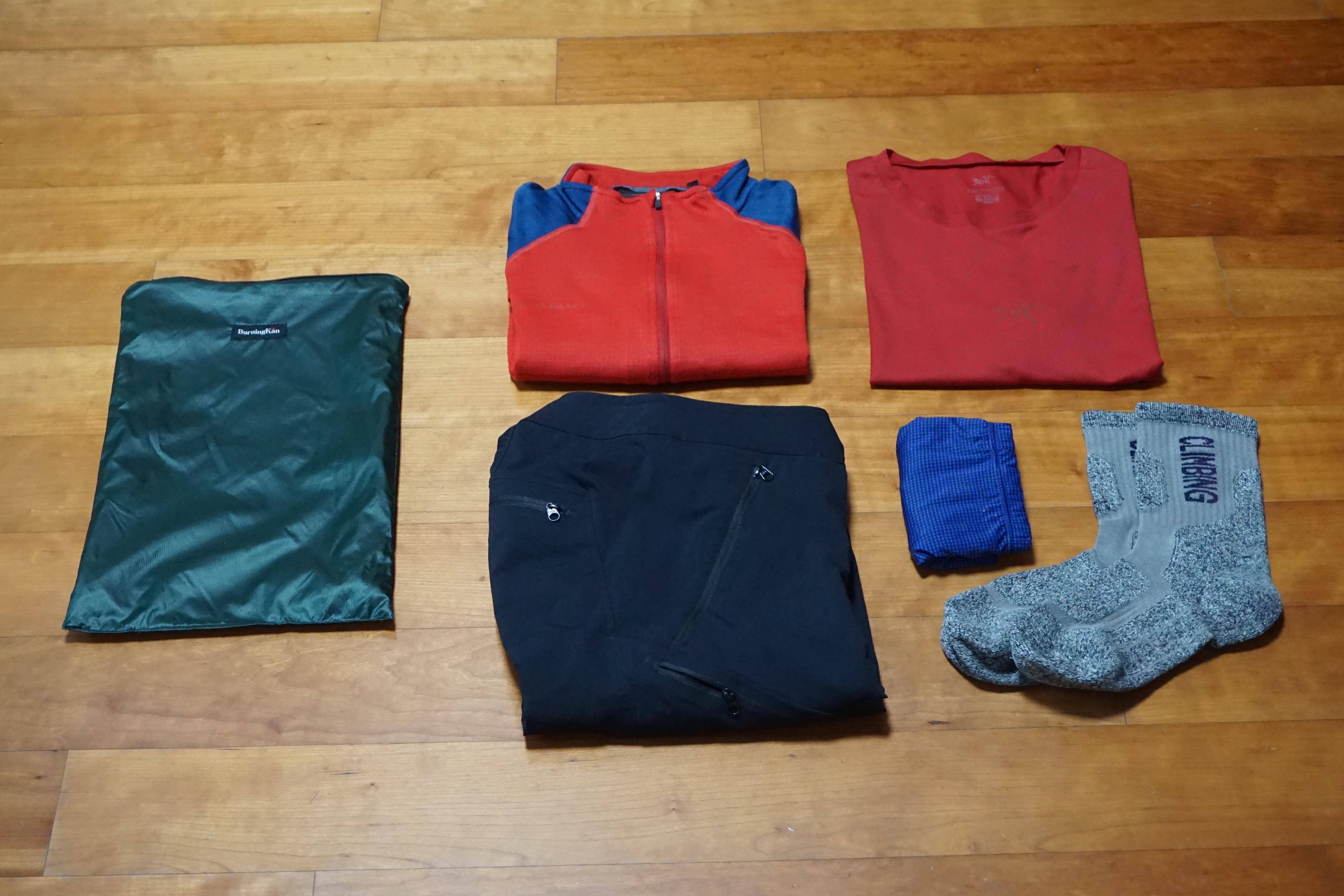 패킹시에는 필로우백을 뒤집어서 여벌 옷 반팔, 긴팔, 바지, 등산양말, 속옷을 넣습니다.