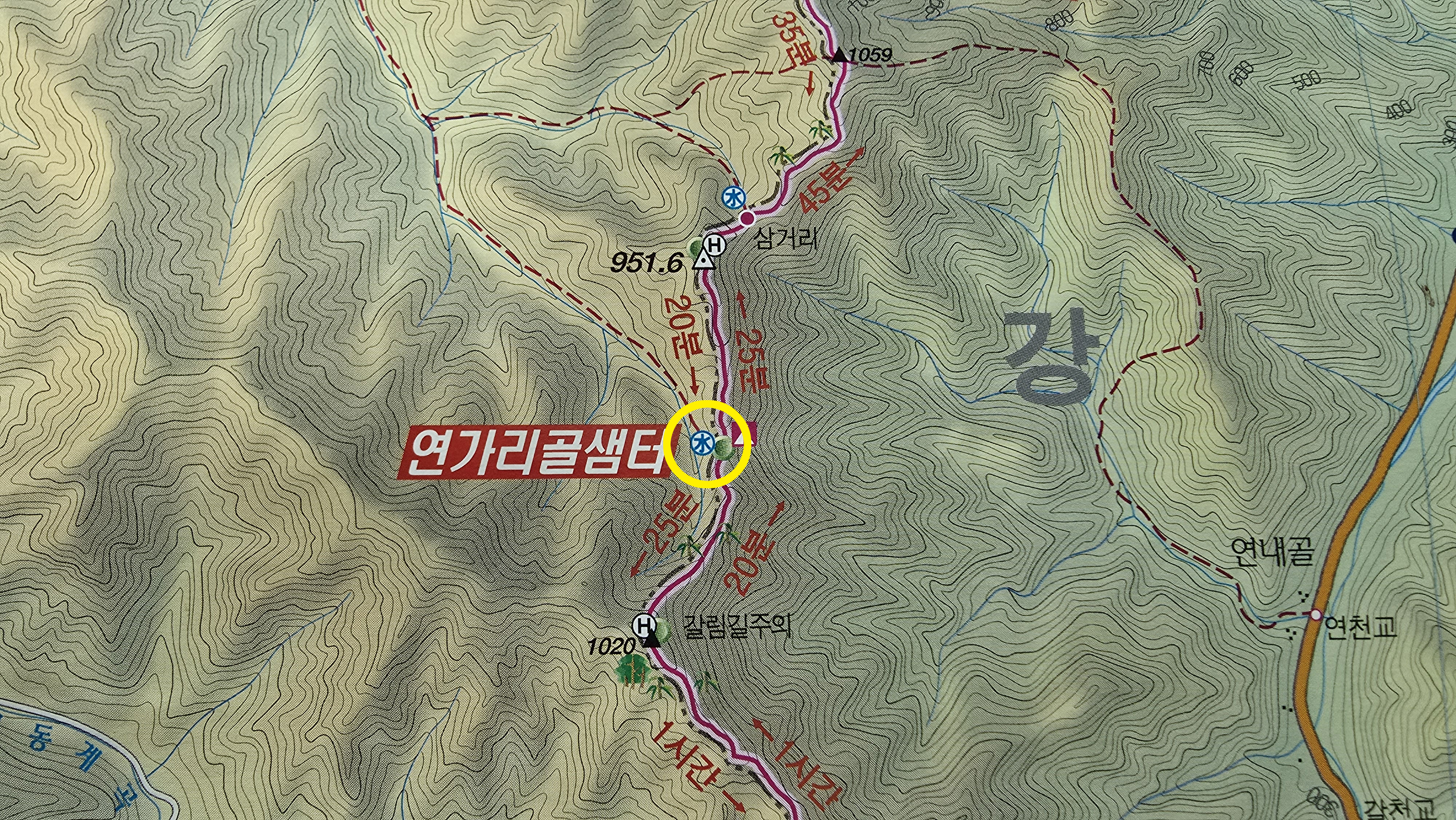 연가리골 삼거리: 우측 연가리골 방향 약 170m 지점 계곡수
