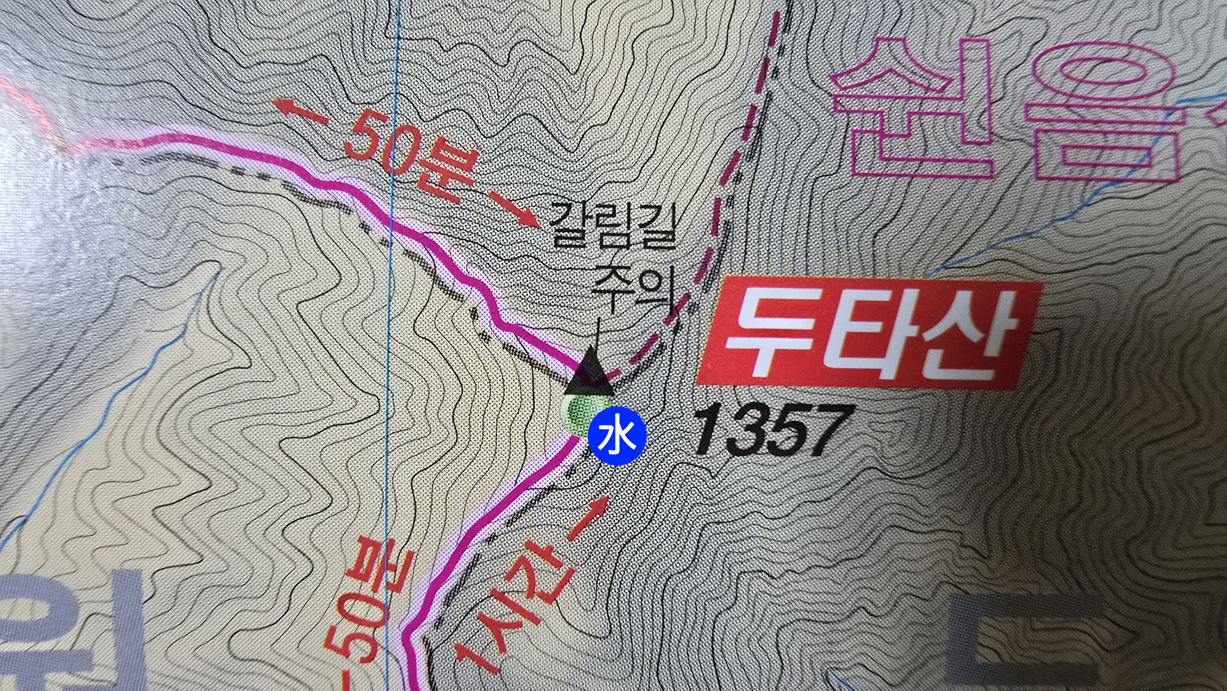 두타산: 댓재 방향 100m 하산 후 좌측 90m 작은 샘터