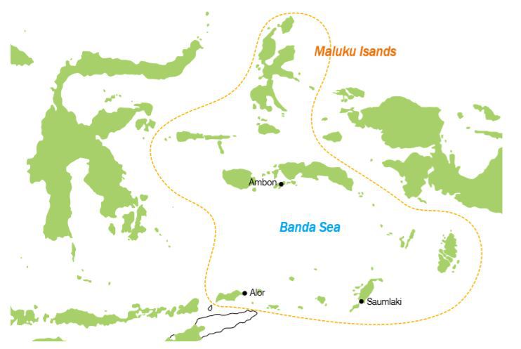 전체 넓이는 약 47만㎢이며 서쪽으로 플로레스해, 남서쪽으로 사부해, 남쪽으로 티모르해, 남동쪽으로 아라푸라해, 북쪽으로 세람해(Ceram), 몰루카해(Molucca)와 각각 맞닿아 있다.