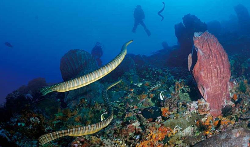 산호초 사이에 중국 바다뱀(Chinese Sea snake)이 먹이활동을 하거나 숨을 쉬기 위해 수면으로 올라가는 모습을 수시로 볼 수 있다. 귀상어(Hammer Head Shark) 무리를 볼 수 있는 곳이기도 하다. 그 외에도 Reef Sharks,