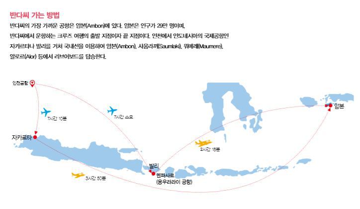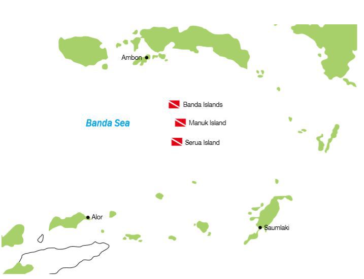 반다씨(Banda Sea) 지역은 다이빙사이트가 넓게 퍼져 있어 다이빙을 하기 위해서는 리브어보드를 이용해야 한다. 리브어보드 승하선 지역은 공항이 있는 암본(Ambon), 사움라끼(Saumlaki), 뭐메레(Maumere), 알로르(Alor) 등이다.