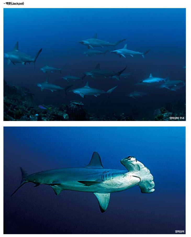 • Water Temp ; Generally, 27~29℃ (degrees Celsius) • Air Temp ; 22~31℃ (degrees Celsius) • Visibility; 20~30m • Currents ; Medium to Strong • Level ; Intermediate to Advanced. • Best Time to Dive ; March, April, & mid-September to December. • Suits : 망치상어를 따라다니다보면 25℃ 이하로 떨어지는 수온약층을 만나 기도 한다. 슈트는 3~5mm 웨트슈트와 후드베스트를 준비하는 것 이 좋다.