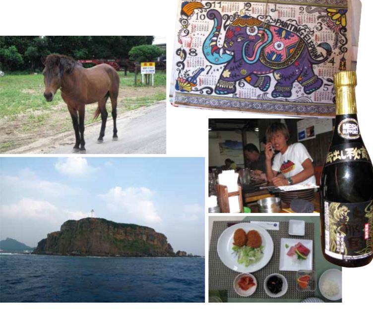 요나구니섬에서는 렌트카를 이용하여 섬을 한 바퀴 돌 아 볼 수 있는데 한나절 정도 걸린다. 일본 최서단에 위치한 등대와 섬 북부에서는 소를 낙농하는 모습을 볼 수 있으며, 우리나라의 여느 시골과 다름없는 모습 이다. 요나구니섬은 세 가지의 동물이 유명한 지역이 기도 하다. 즉, 청새치, 말(与那国馬), 나비이다. 청새치 는 지역 주민들의 어업에 없어서는 안 되는 생물이고, 이 섬의 말은 튼튼하기로 유명하다. 요나구니섬의 요리 중에 유명한 것은 미미가(ミミガ ー)라는 돼지의 귀 껍질로 만든 육포 비슷한 안주이다. 미미가는 오키나와 토속주 아와모리(泡盛)와의 궁합이 완벽하다고 한다. 그 이외에도 야에야마 소바(八重山 そば, 요나구니식의 칼국수), 청새치를 이용한 요리 등 이 유명하다.
