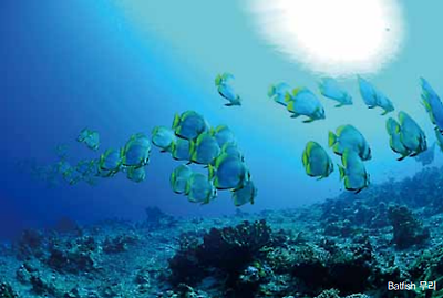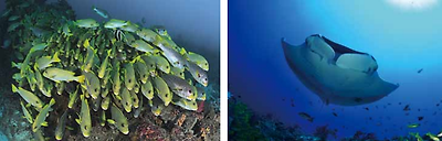상히에제도의 수중은 세계에서 손에 꼽힐 만큼 깊 어 심해 해류는 플랑크톤과 영양소를 끌어온다. 그래서 망치상어(Hammerhead sharks), 돌고래 (Dolphins), 만타레이(Manta rays) 등을 쉽게 만나 고, 상어나 바라쿠다(Barracuda) 무리, 자이언트 트 레발리(Giant trevally) 무리, 참치(Tuna) 무리 등을 만날 수 있다.