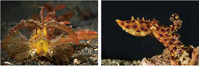 암본만베이서 사이키데릭 프로그피쉬를 비롯하여 Rhinopias Scorpion Fish, Various Frog-fish Species, Mandarin Fish, Ghost Pipefish, Harlequin Shrimp, Flamboyant Cuttlefish, Blue Ring Octopus, Pygmy Seahorse, Stonefish, 다양한 Nudibranchs과 Shrimps 등을 볼 수 있다.