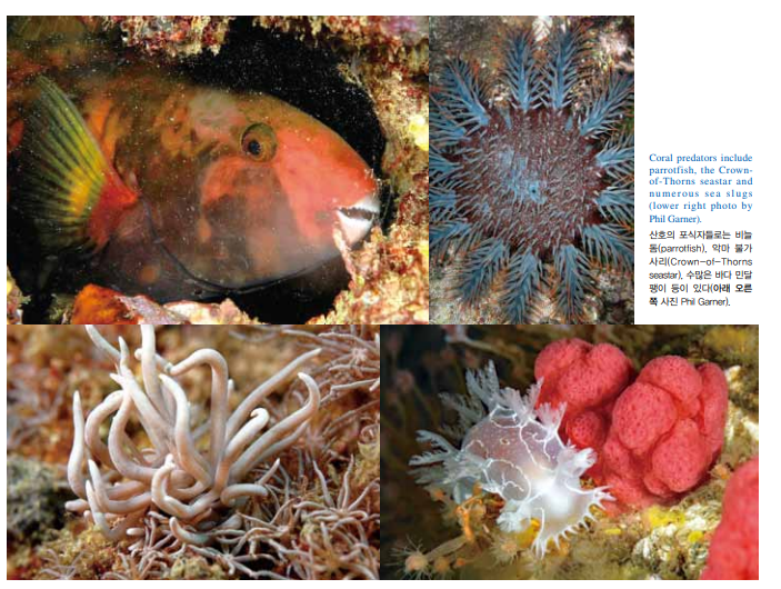 나는 과거 미국 대통령 한 분이 대중에게 “숲 하나를 보았으면 산 전체를 본 것이나 다름없다”고 말한 날을 절대 잊지 못한다. 정말 근시안적이고 무지하며 사려 깊지 않은 말이지 않은가. 하나의 산호초처럼 하나의 숲도 복잡하고 역동적인 생물군으로 언 제라도 수백 번의 주기와 상호작용이 계속되는 곳이다. 숲처럼 산 호초도 다양한 특징을 보인다. 이번 호에서는 해양에서 가장 역동 적인 서식지의 하나를 다루는데, 산호초를 형성하거나 그렇지 않은 산호 등 서로 다른 종류의 산호들, 그들이 어떻게 번식하고 성장하 는지, 또한 우리가 숨 쉬는 공기의 질에 어떻게 기여하는지를 살펴 보게 된다.