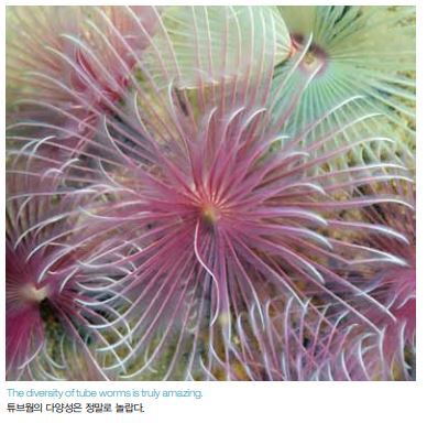 정말로 대단하지 않은가? 이 벌레가 어찌 이렇게 놀랍고도 혁신적 인 디자인을 고안하였으며, 그것을 정교하게 가다듬는 데 얼마만한 세월이 흘렀을까? 해양 벌레의 다양성과 복잡성을 살펴보면, 서두에서 소개한 아이 들의 섬뜩한 노래를 만든 사람은 아마도 바다 밑에서 사는 놀라운 벌레들을 경험해보지 못하였으리란 짐작이 들 것이다.