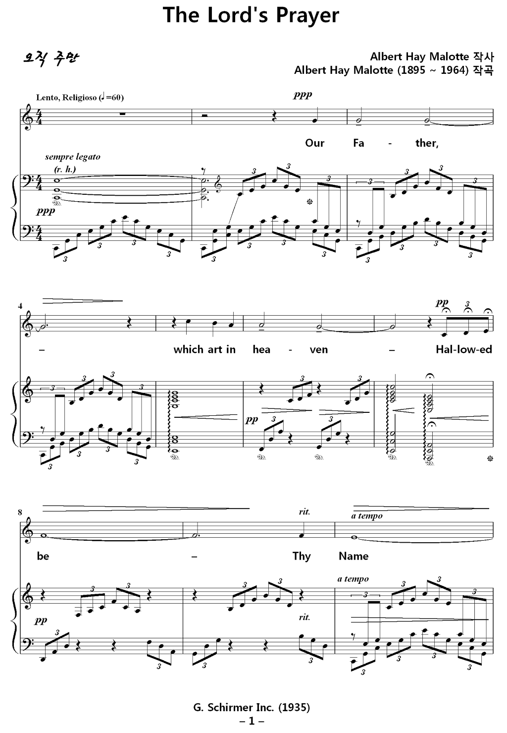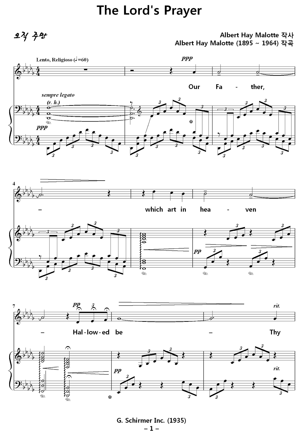 The Lord's Prayer / 주의 기도 (Albert Hay Malotte) NWC 솔로 영문악보 다운받기