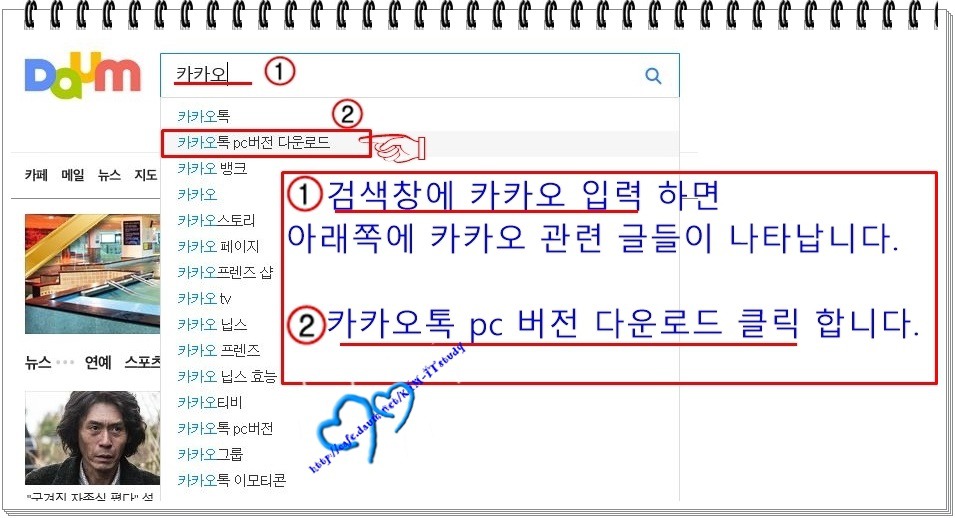 네이버나 다음 검색창에서 카카오톡을 입력 합니다.