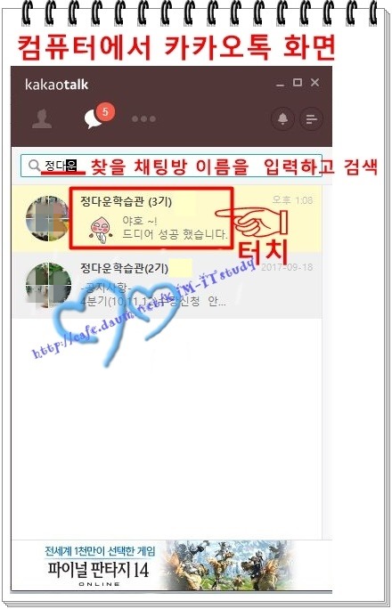'정다운학습관(3기)'채팅방이 나타 납니다.