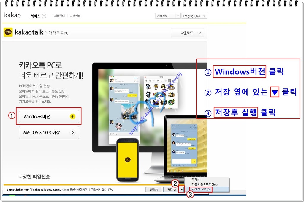 카카오톡 PC www.kakao.com/services/8/pc [Enter]
