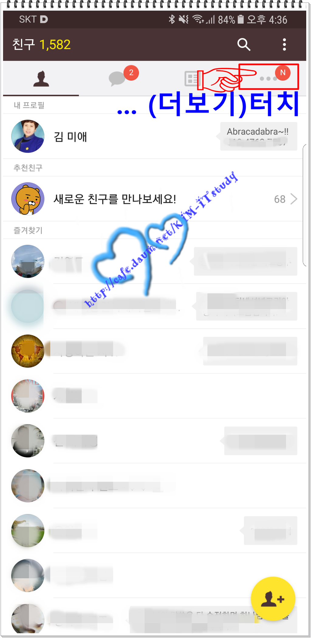 (※새로운 채팅을 하기 위해서는 사람모양의 아이콘에서 찾아 선택)