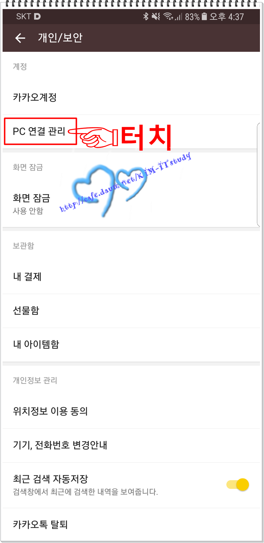 카카오톡 PC버전 깔아 놓으시면 매우 편리 하게 사용 하실 수 있습니다.