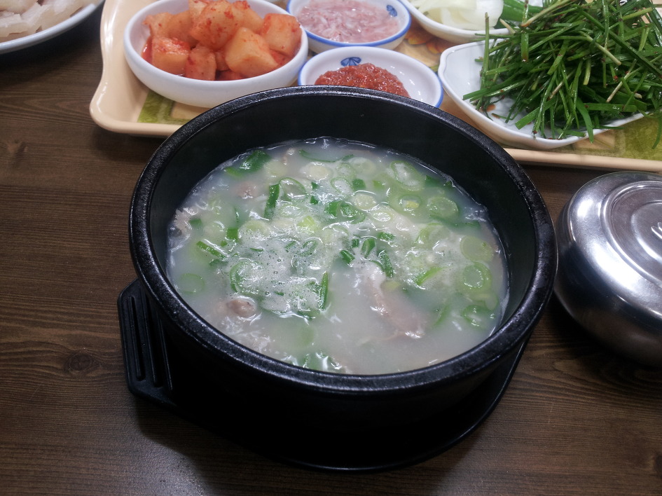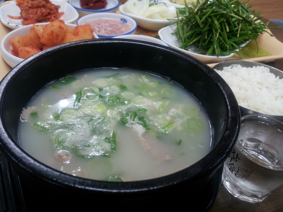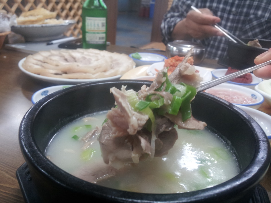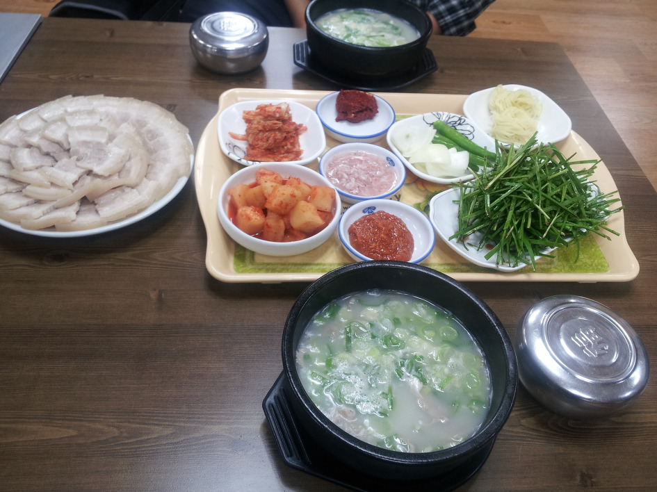 돼지뼈 사골로 국물을 내어 수육과 함께한 국물이 단연 내 입맛엔 최고다.
