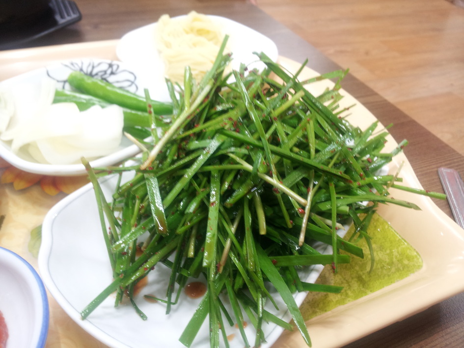 줄자 만한 두께의 정구지를 먹다가