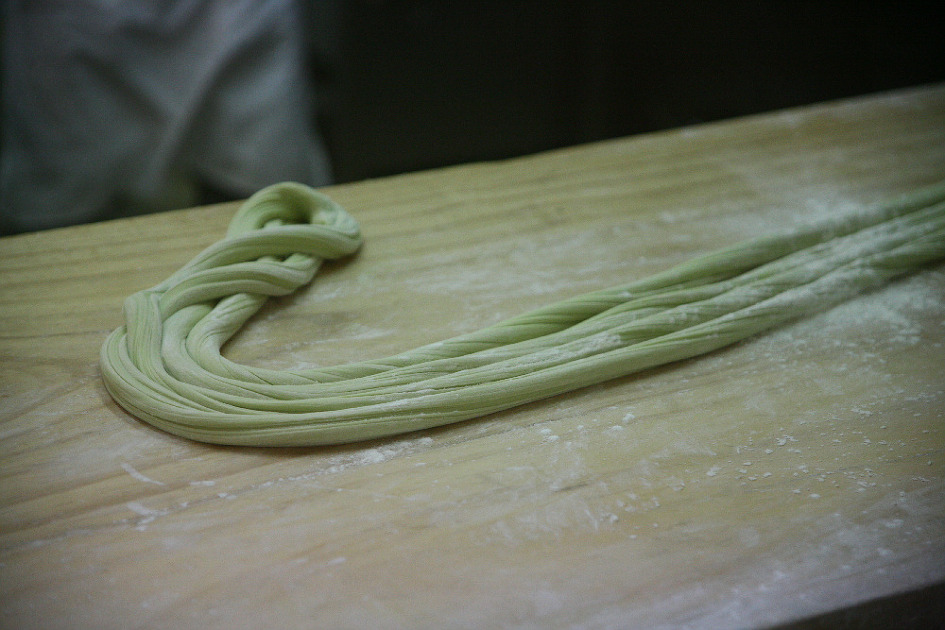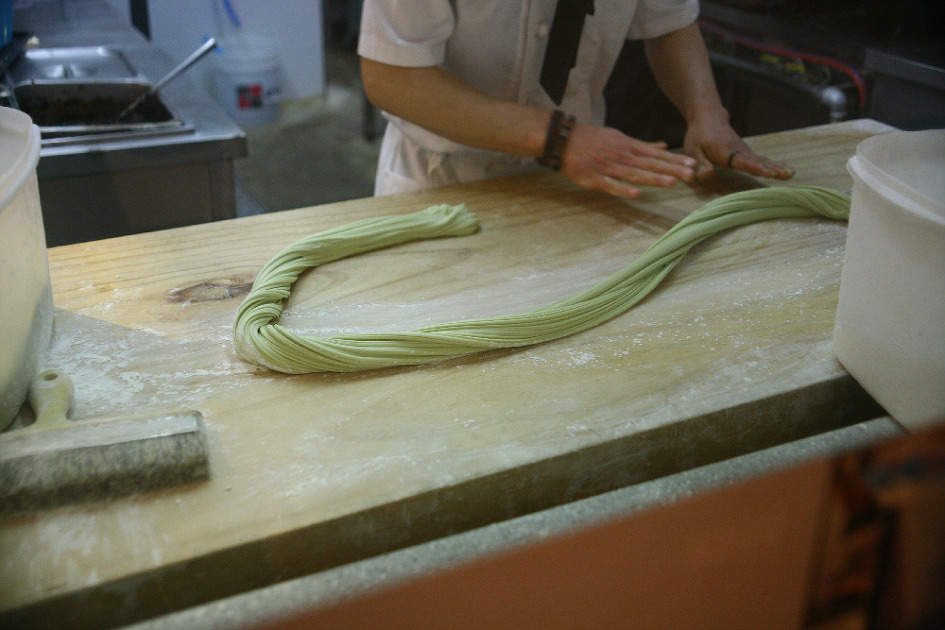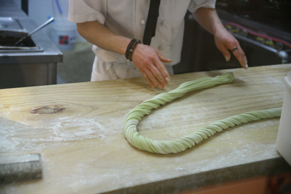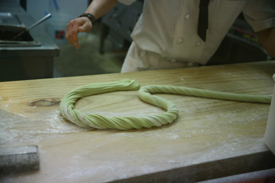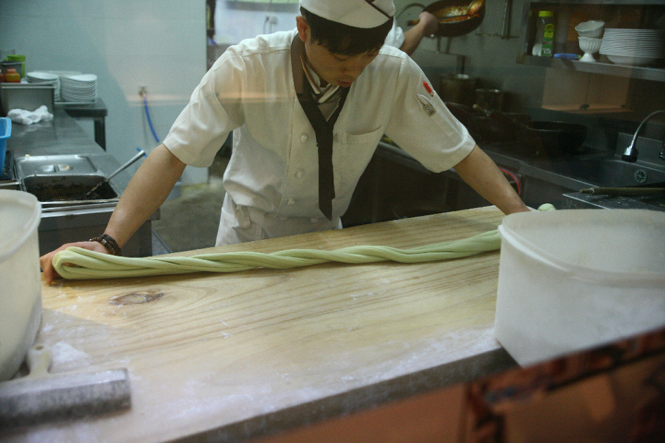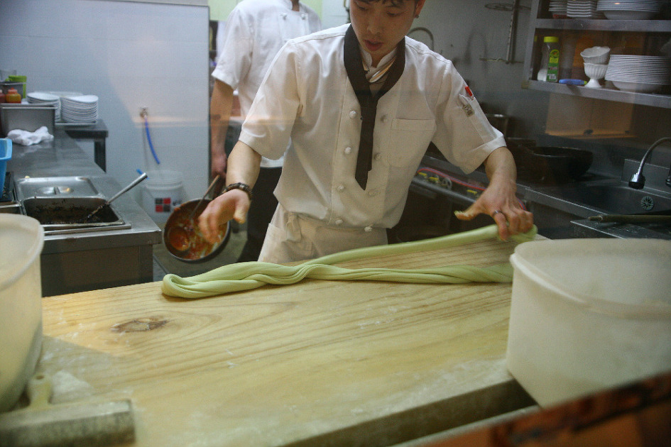 가게 입구에 자리한 수타면이 탄생되는 곳이다.
