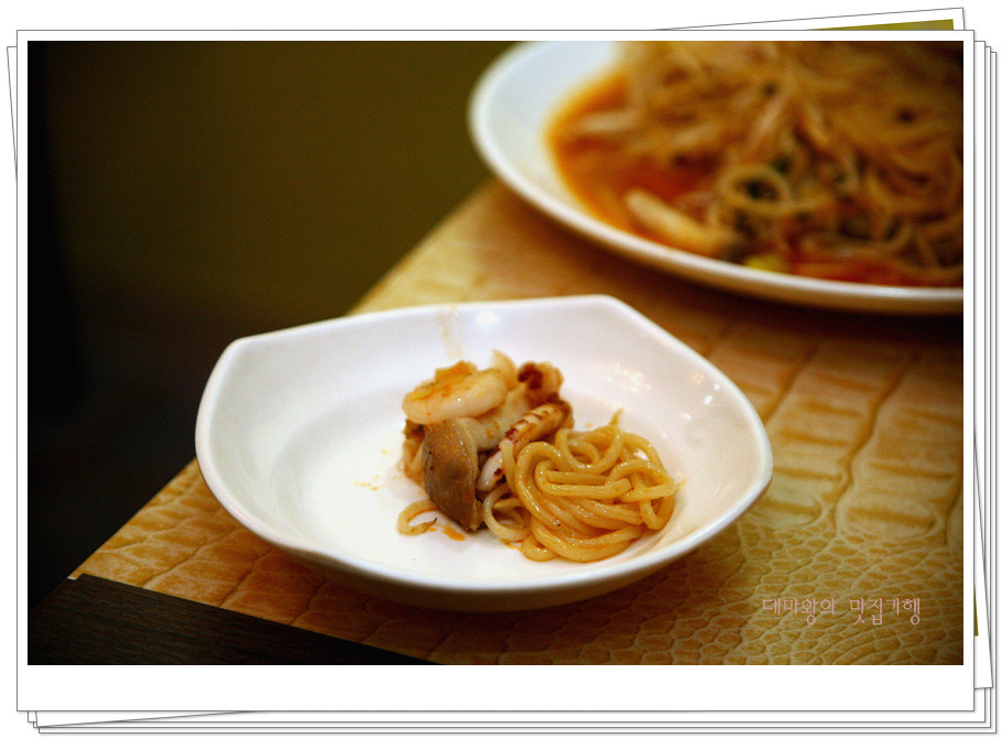 야채와 해물이 함께 어우러져 열차를 기다리는 시간이 남거나