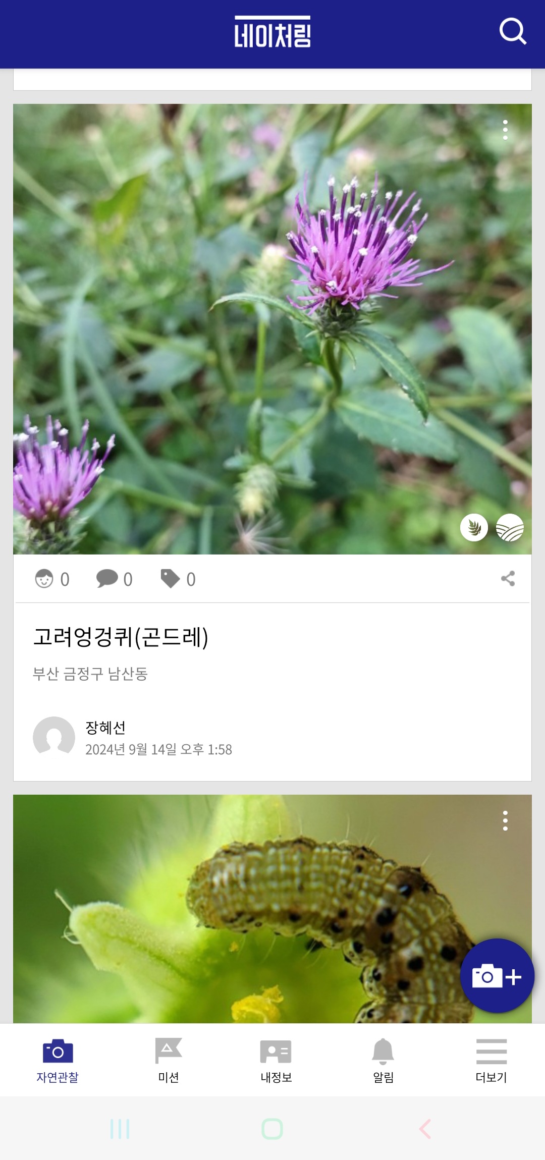 그리고 오늘 10시부터 꿀벌살리 바이오블리츠(생물 다양성 탐사) 행사가 있었어요. 살리밭에 살고 있는 곤충, 식물을 알아보고 사진찍어서 네이처링에 올렸어요.