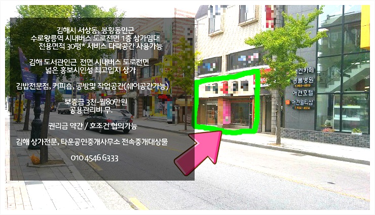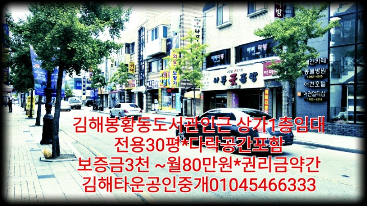 [스크랩] 김해시 서상동 봉황동도서관 맞은편 상가1층임대 애견관련업종 및 도소매업종 및 공방 커피숍 1층상가임대 월80만원