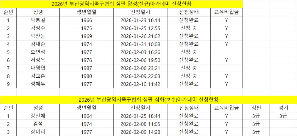 심판 강습회 접수현황 2/12 작성자박찬동 부산시 경기이사(2025~)|작성시간26.02.12|조회수120 목록 댓글 0 글자크기 작게가 글자크기 크게가 다음검색 현재 게시글 추가 기능 열기 북마크 공유하기 신고 센터로 신고 댓글 댓글 0 댓글쓰기 답글쓰기 댓글 리스트