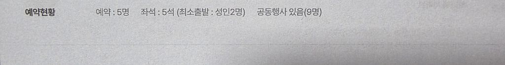 작성자내일을향해앞으로 작성시간 26.04.01 지금여행사에서는 최소2명이상 출발인데 좌석5석 중 5명 예약되었다는말이고