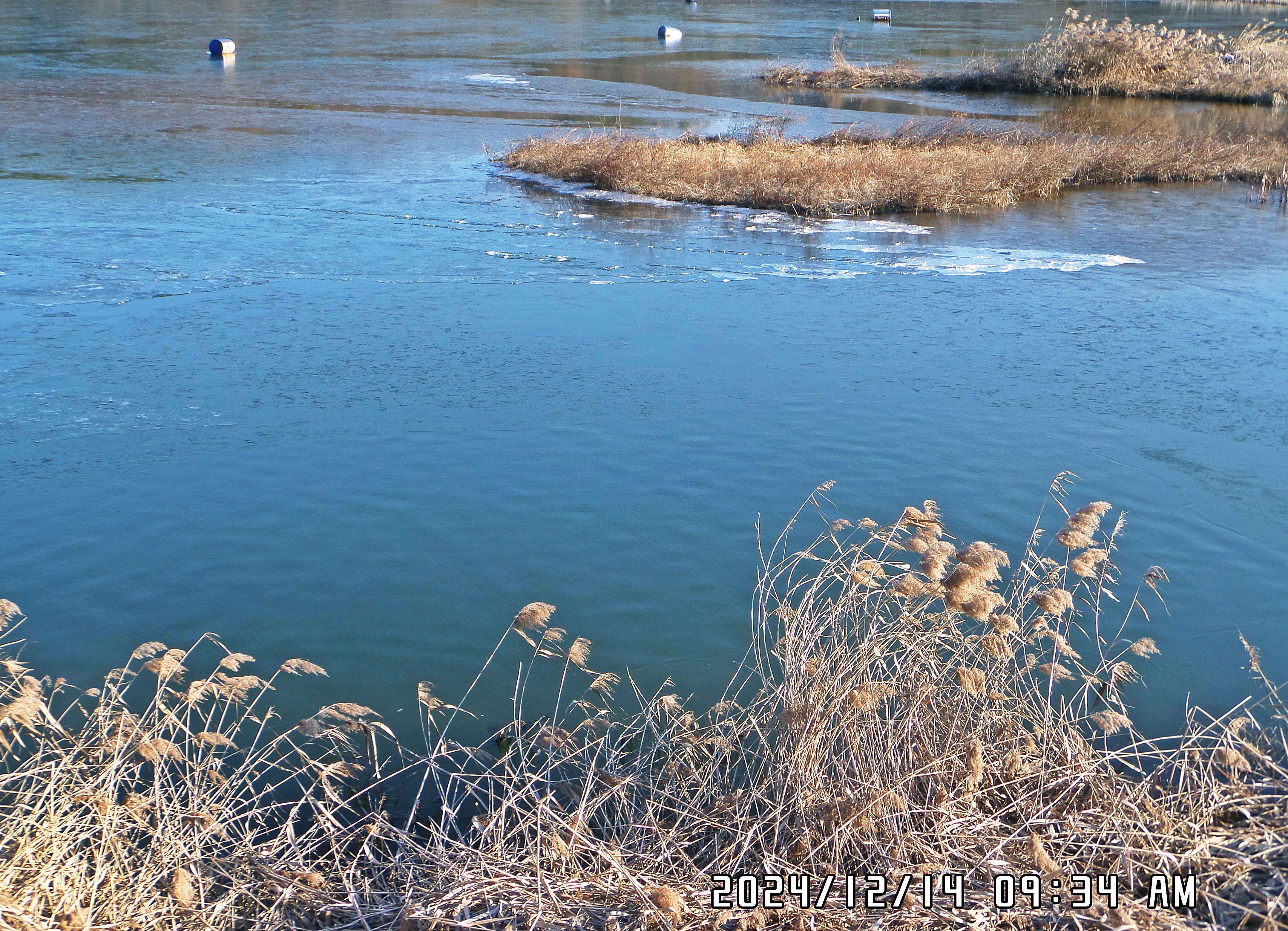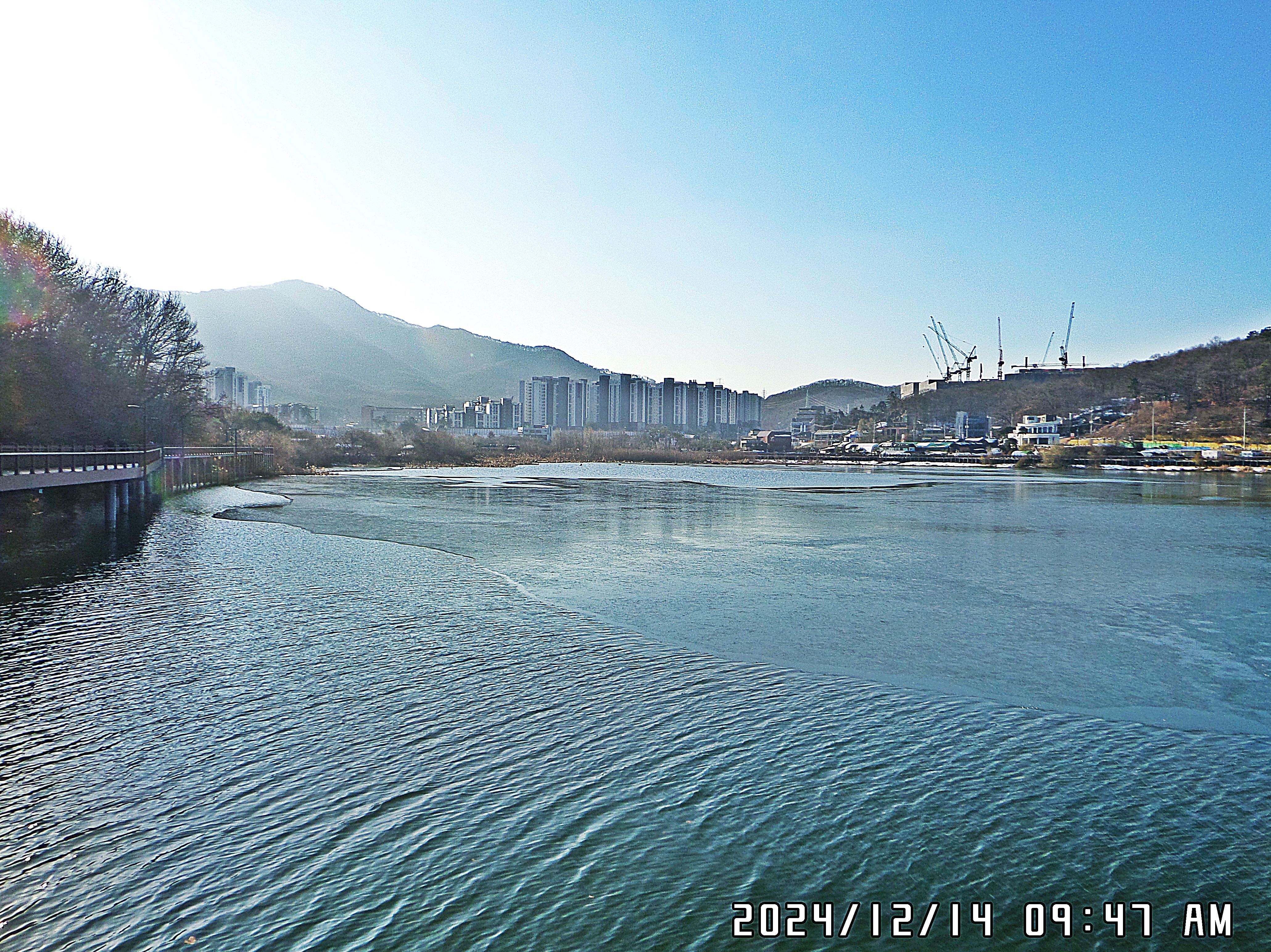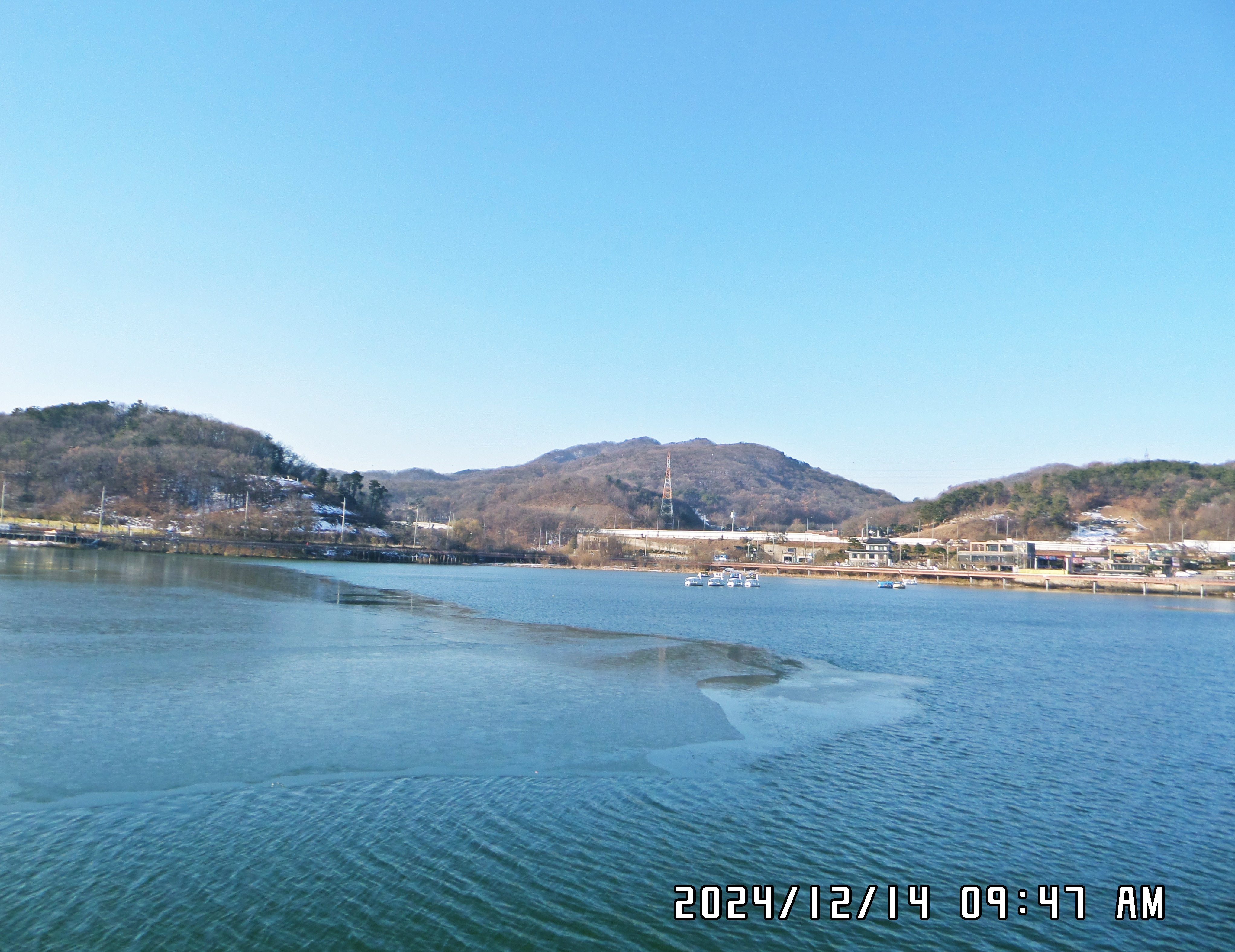 (백운호수 주변은 서울보다 기온이 더 낮았고 산에 잔설도 더 많았으며, 호숫가의 바람과 얼음은 겨울철