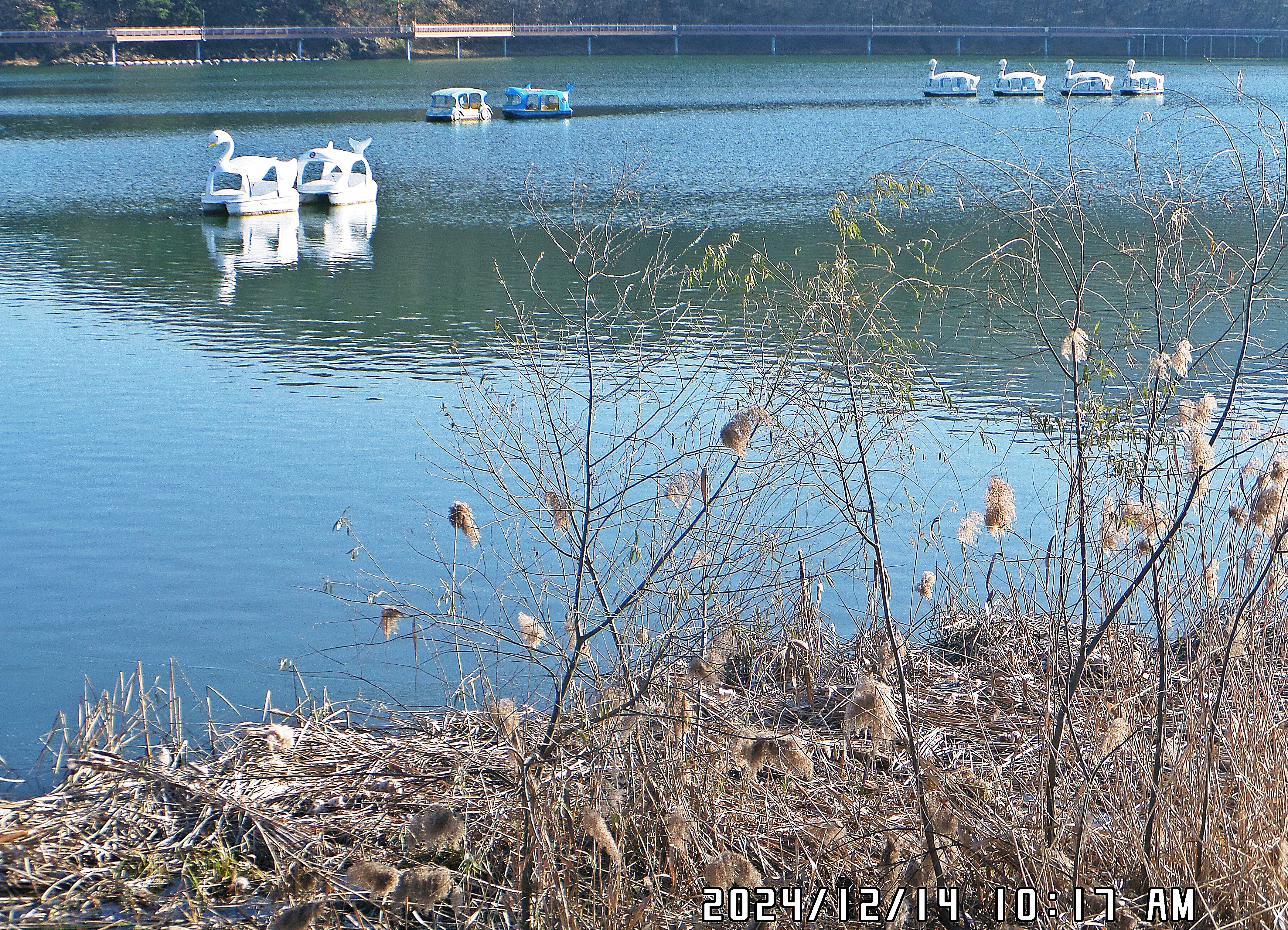 ▲물위의 오리배를 비롯한 여러 모양의 보트들이 평화롭다