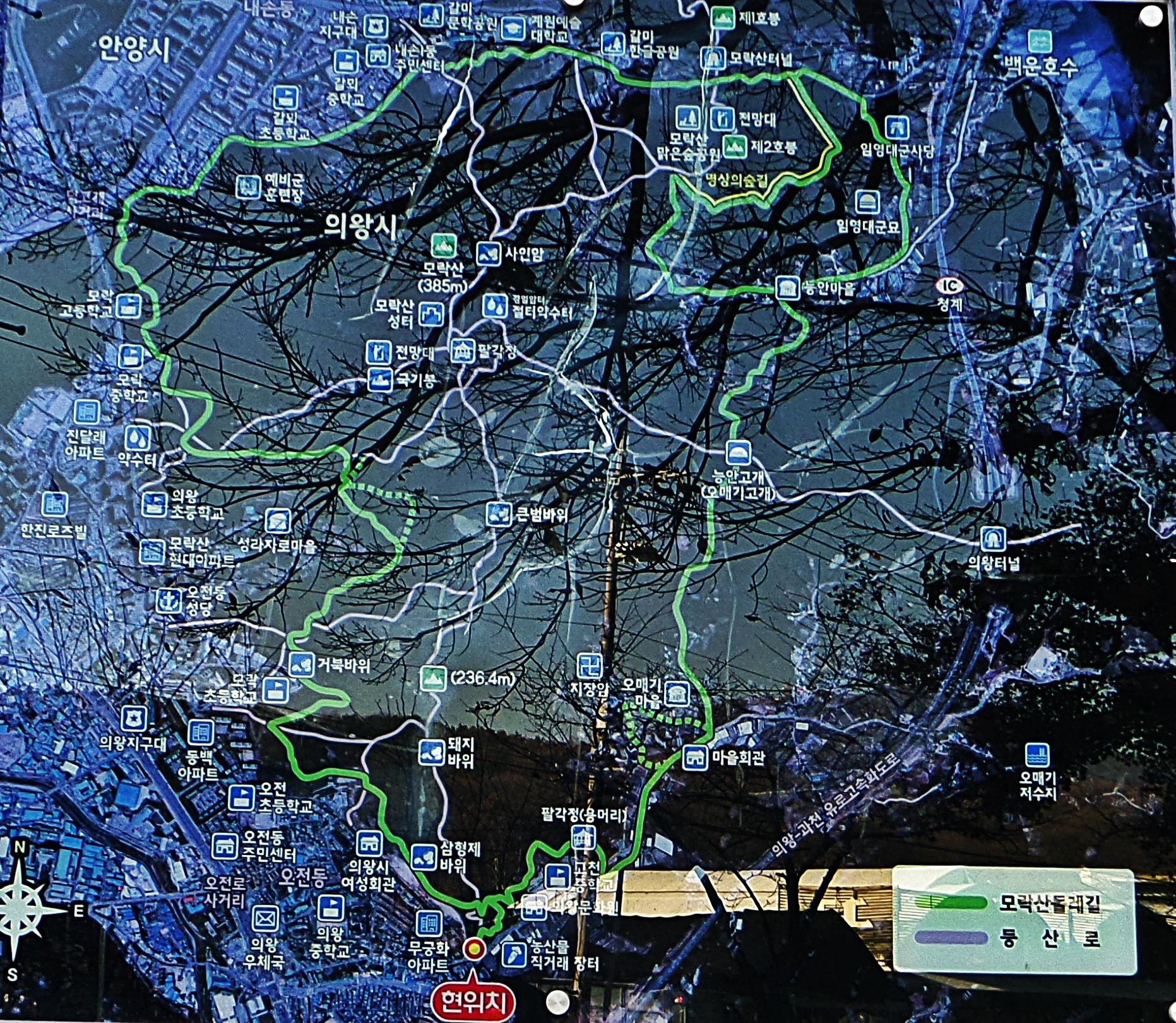관리공단뒤-의왕글로벌도서관갈림4거리-야생화단지-거북바위-모락어린이공원-모락산 둘레길입구