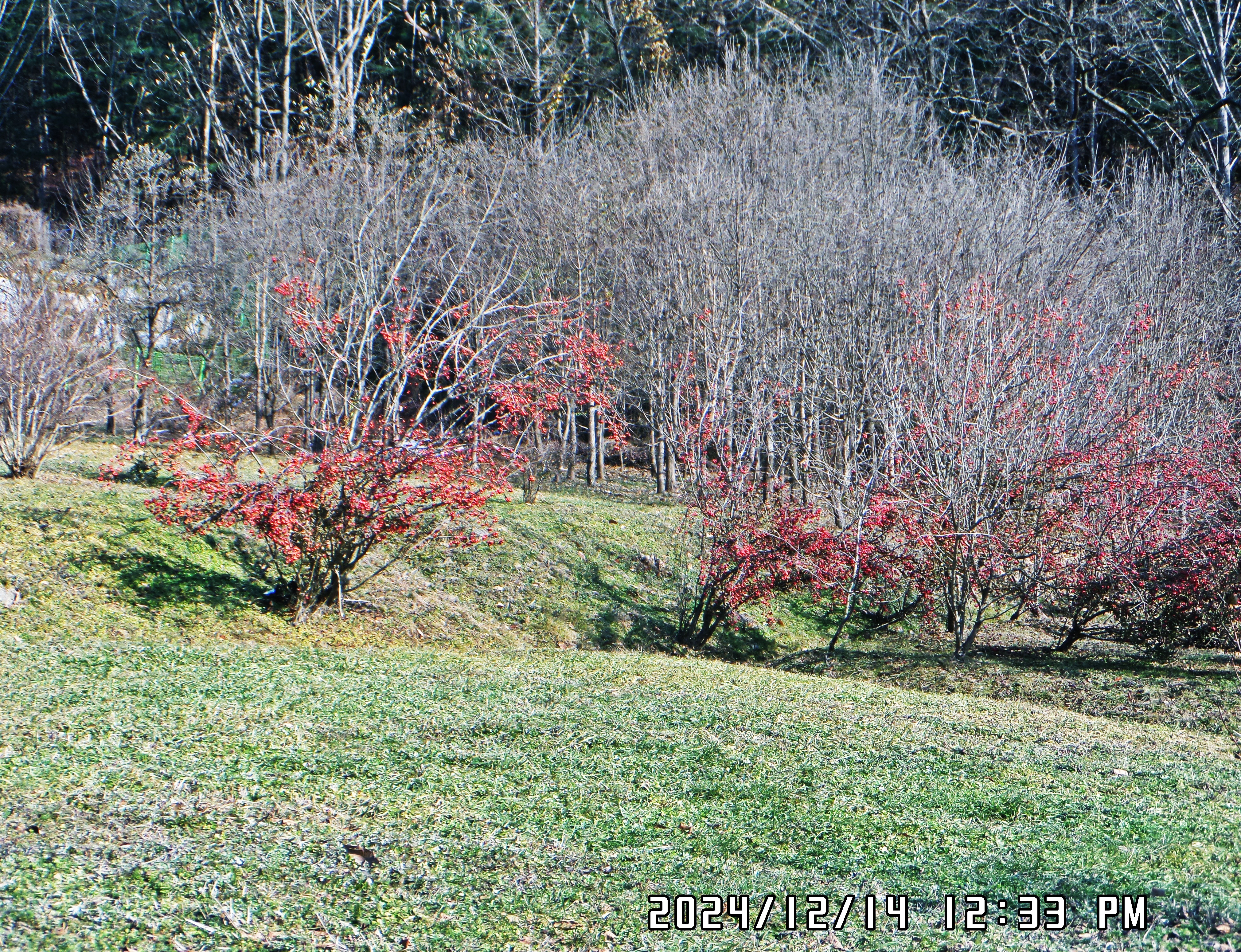 ▲이상, 오매기 마을의 잘 가꾸어진 숲과 붉은 산수유 모습