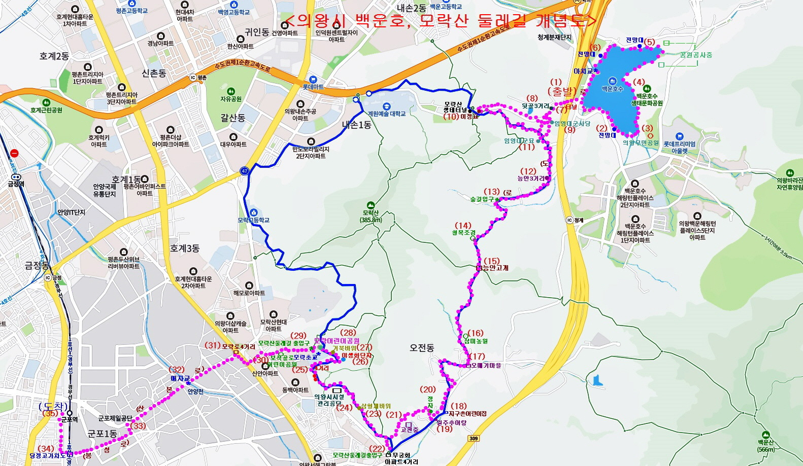 *백운호수(능안입구)-전망대1-의왕무민공원-백운호수생태공원-공원공사현장-전망대2-제방전망대-