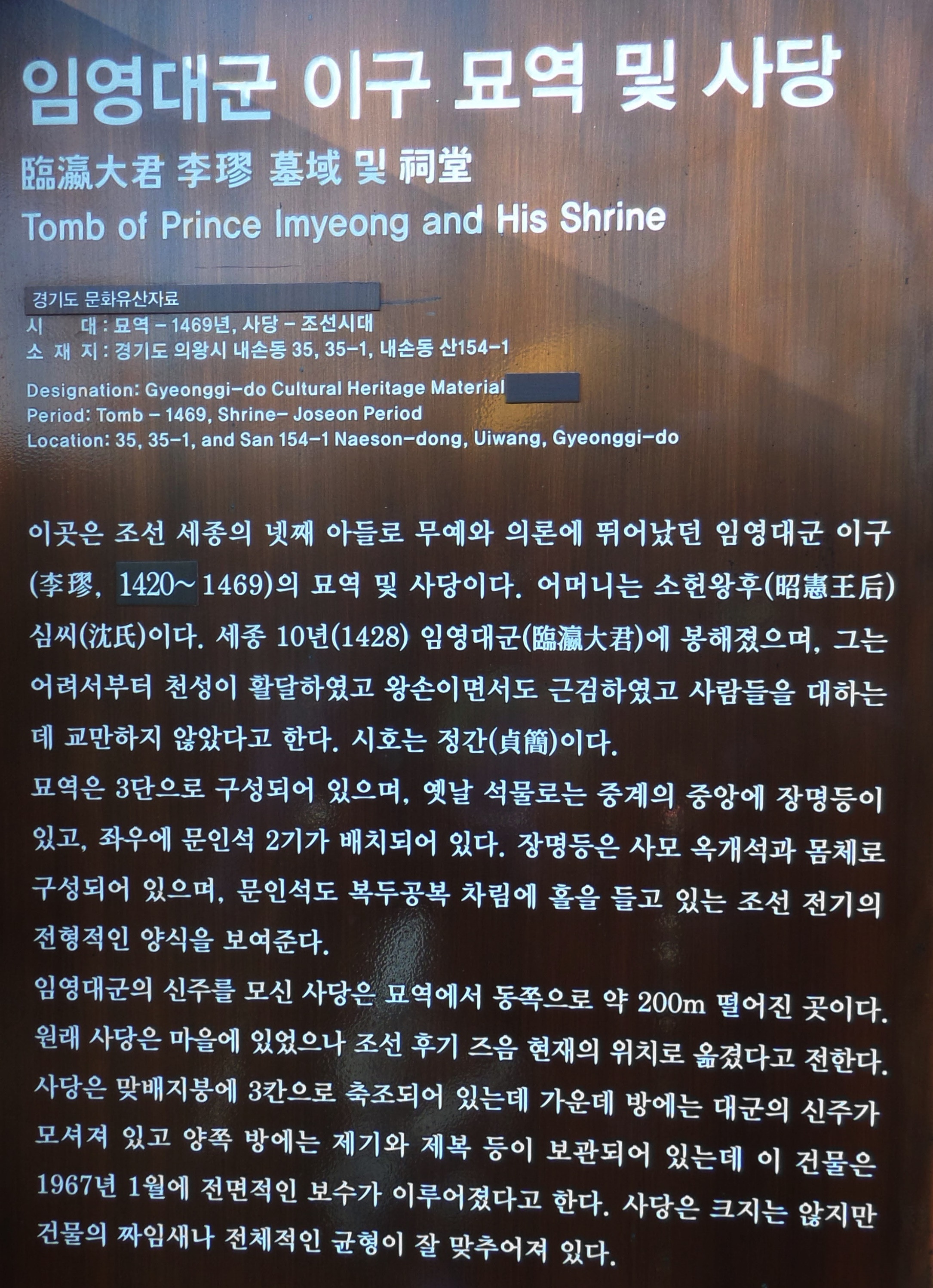 세조의 4째 아들 임영대군이 세조의 왕위 찬탈에 충격을 받아 매일 이산에 올라 서울을 향해