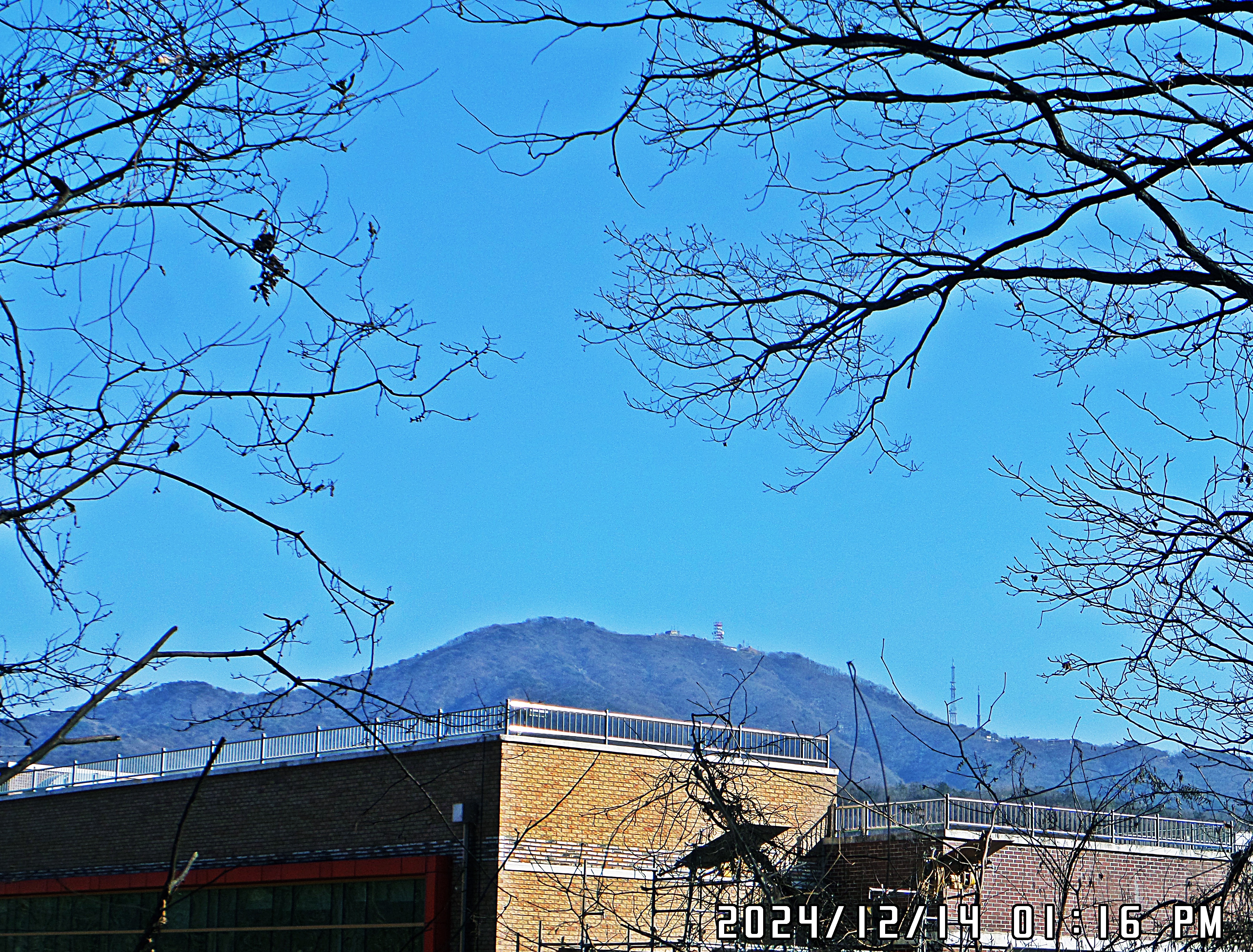 ▲왼쪽 멀리 청계산 능선의 국사봉과 우측에는 바라산