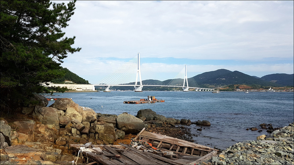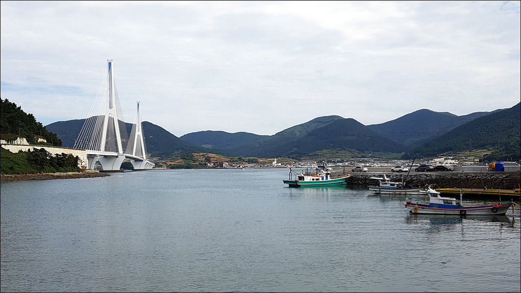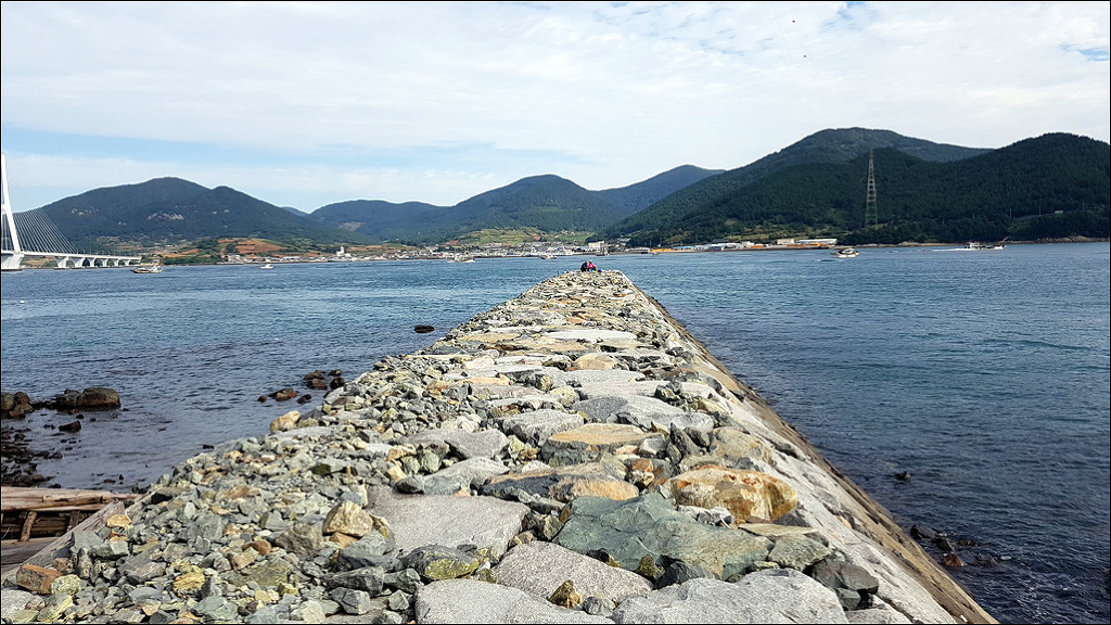 개머리방파제방면에서 본 화태대교의 모습, 방파제 이름이 좀 생생하지만 뜻은 모르겠다