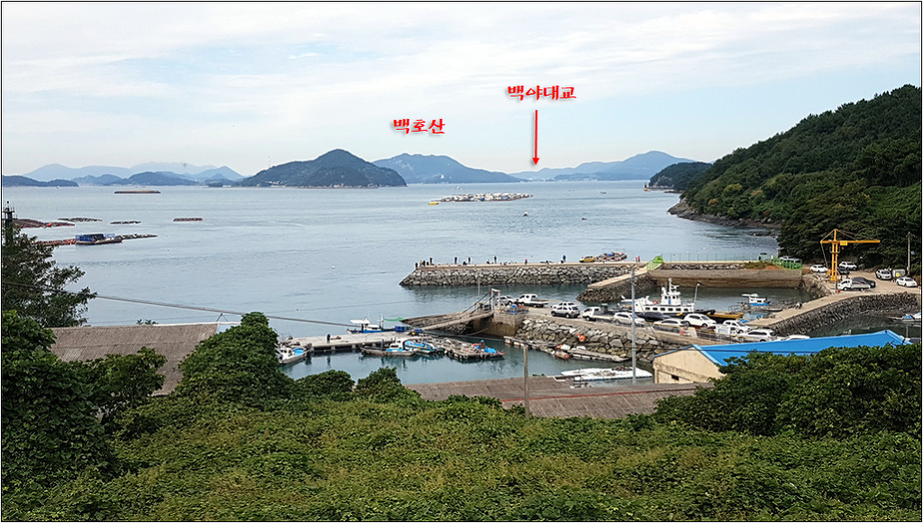 이곳 독정선착장에서 본 바다위에 떠있는 듯한 백야도 백호산과 백야대교도
