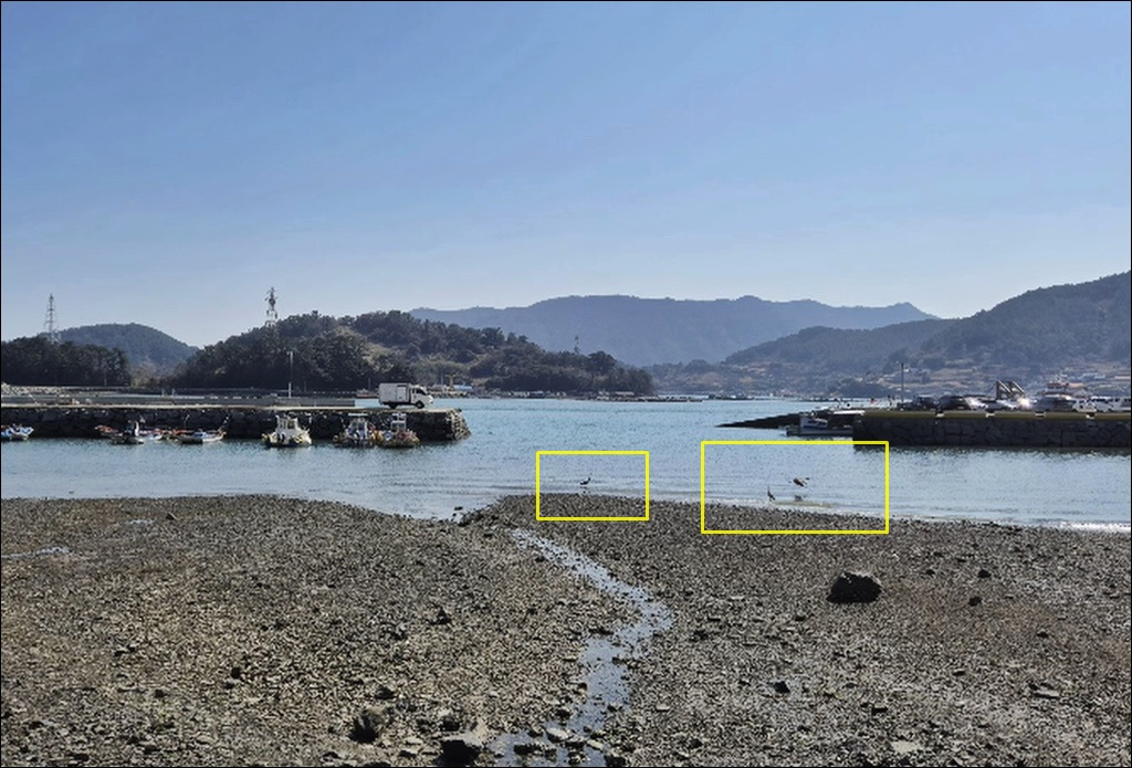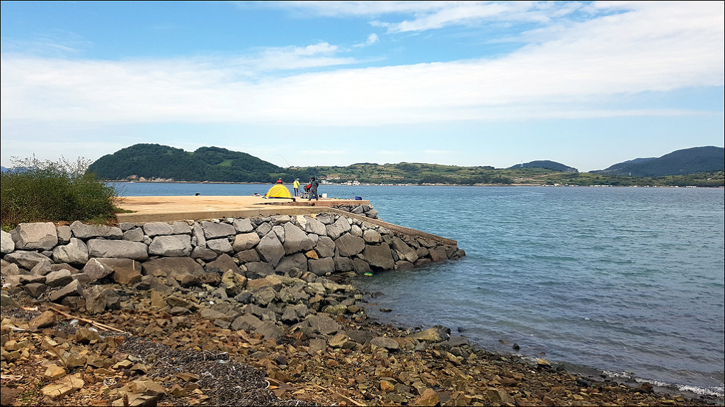 방파제 끝부분에서 어느 부부가 한가롭게 낚기를 즐기고 있는 모습이 포착된다