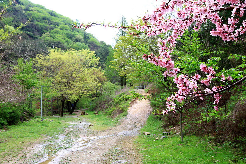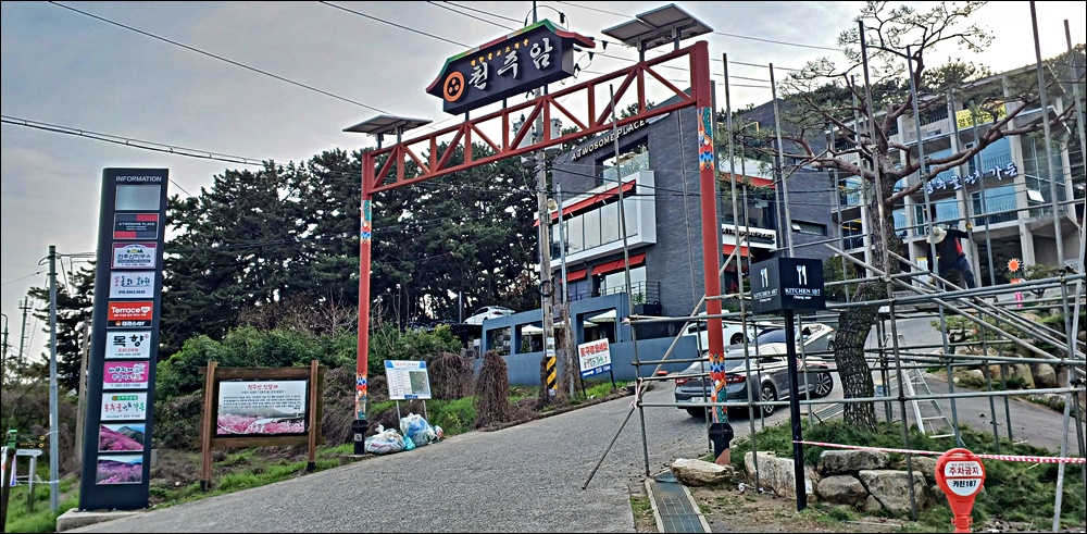 천주사로 들어가는 차량 도로입구(길건너편에 주차장 있음)