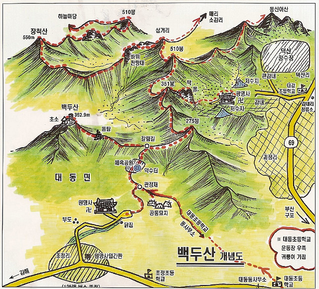 김해:-대동초등학교~백두산~장척산~하늘마당