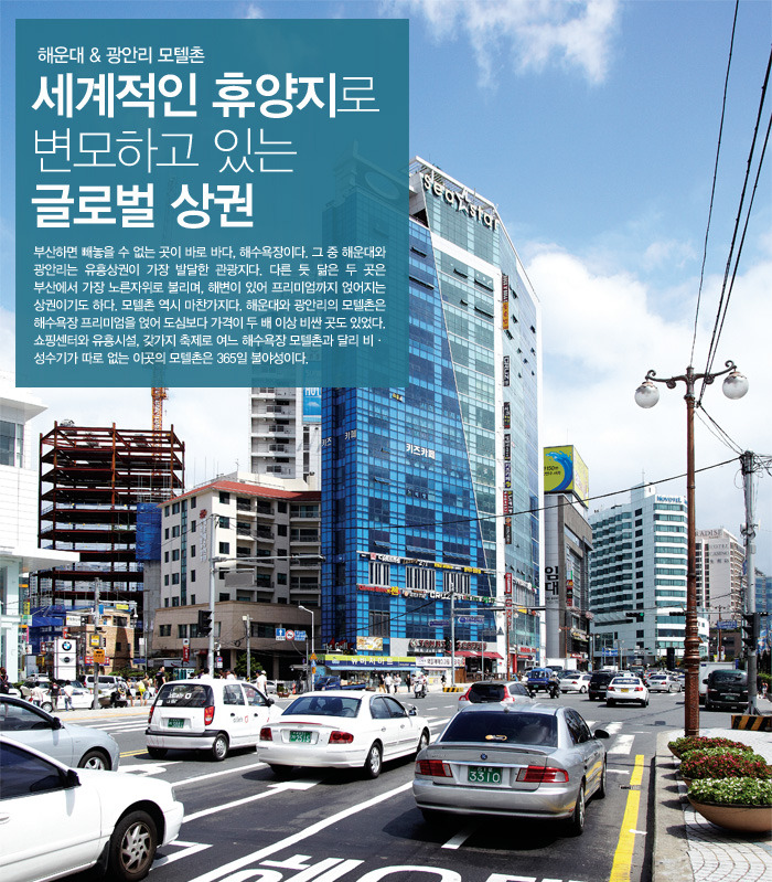 부산에서 가장 ‘핫!한’ 동네를 꼽으라면 단연 해운대일 것이다. 일명 ‘해운대 효과’라는 신조어까지 낳으며 ‘일단 입성하면 뜬다!’라는 말까지 나오고 있다. 사계절 내내 레저를 즐길 수 있는 자연환경과 명품 아웃렛 쇼핑, 영화 문화 등 도시 생활의 모든 인프라를 원스톱으로 누릴 수 있는 해운대는 가히 최고의 황금어장, 황금상권이라고 해도 과언이 아니다.
