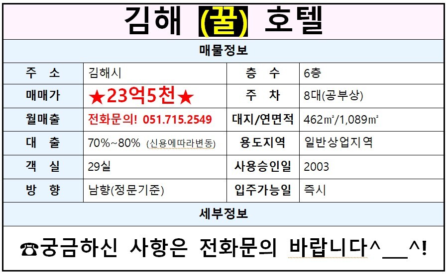 #호텔매매#부산호텔매매#경남호텔매매#비즈니스호텔#부티크호텔#3성급호텔#부산모텔매매#모텔임대#모텔솔루션#모텔전문부동산#부동산재테크#경남모텔매매#창원모텔매매#울산모텔매매#김해모텔매매#부산상권#부산모텔중개 #양산모텔매매#해운대모텔매매#마산모텔매매#수익형부동산#소액투자#부산모텔창업#경남모텔호텔매매#럭셔리#최고급자재#최고시설#부동산투자#부동산#신축모텔매매#사업부지매매#비타민#리모델링모텔매매#칠곡모텔매매#법인호텔매매#모텔전문#호텔전문부동산#숙#호텔은배신하지않는다#모텔은배신하지않는다#호텔매매#부산모텔매매#근교모텔매매#모텔임대#펜션매매#모텔솔루션#부산호텔매매#강력추천매물#모텔전문부동산#모텔급매#매매#모텔#경남모텔매매#경남모텔임대#무인텔#김해모텔매매#창원모텔매매#부산상권#급매#울산모텔매매#부산모텔중개#호텔/모텔#양산모텔매매#해운대모텔매매 #풀빌라#펜션매매#부동산재테크#마산모텔매매#소액투자#바닷가#수익형부동산#부산모텔창업#경남모텔호텔매매#애견펜션#사천모텔매매#부산모텔인수 #부동산투자#경북모텔매매#최고시설#최고급자재#럭셔리#재테크#비즈니스호텔#여수호텔#전남호텔#여수리모델링호텔#리모델링#여수밤바다#쾌적한호텔#신축호텔#깨끗한숙박시설#여수#강추#김해호텔#김해모텔#김해숙박업#경남호텔#경남모텔#경남호텔매매#김해호텔매매#김해모텔매매#김해호텔임대#김해모텔임대#경남호텔임대#경남모텔임대#호텔모텔전문가#한길부동산