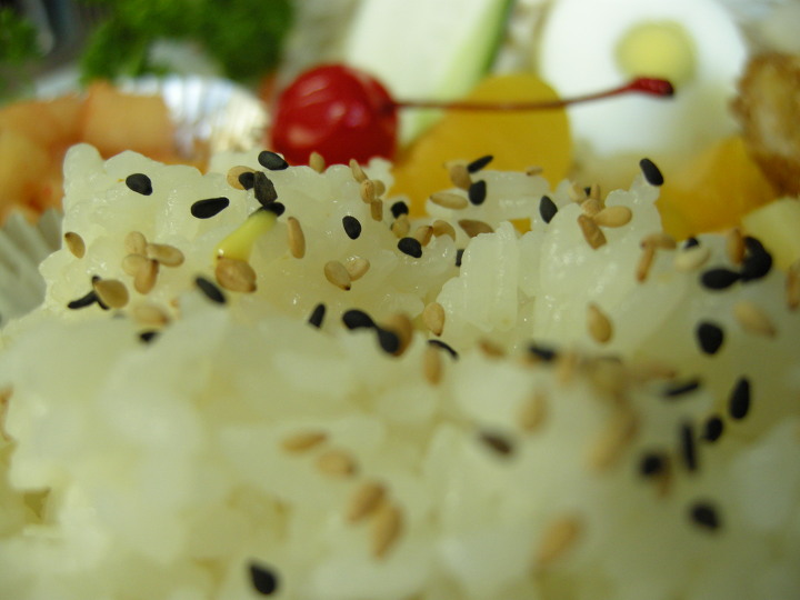 밥위에 깨도 살살 뿌려놨구..