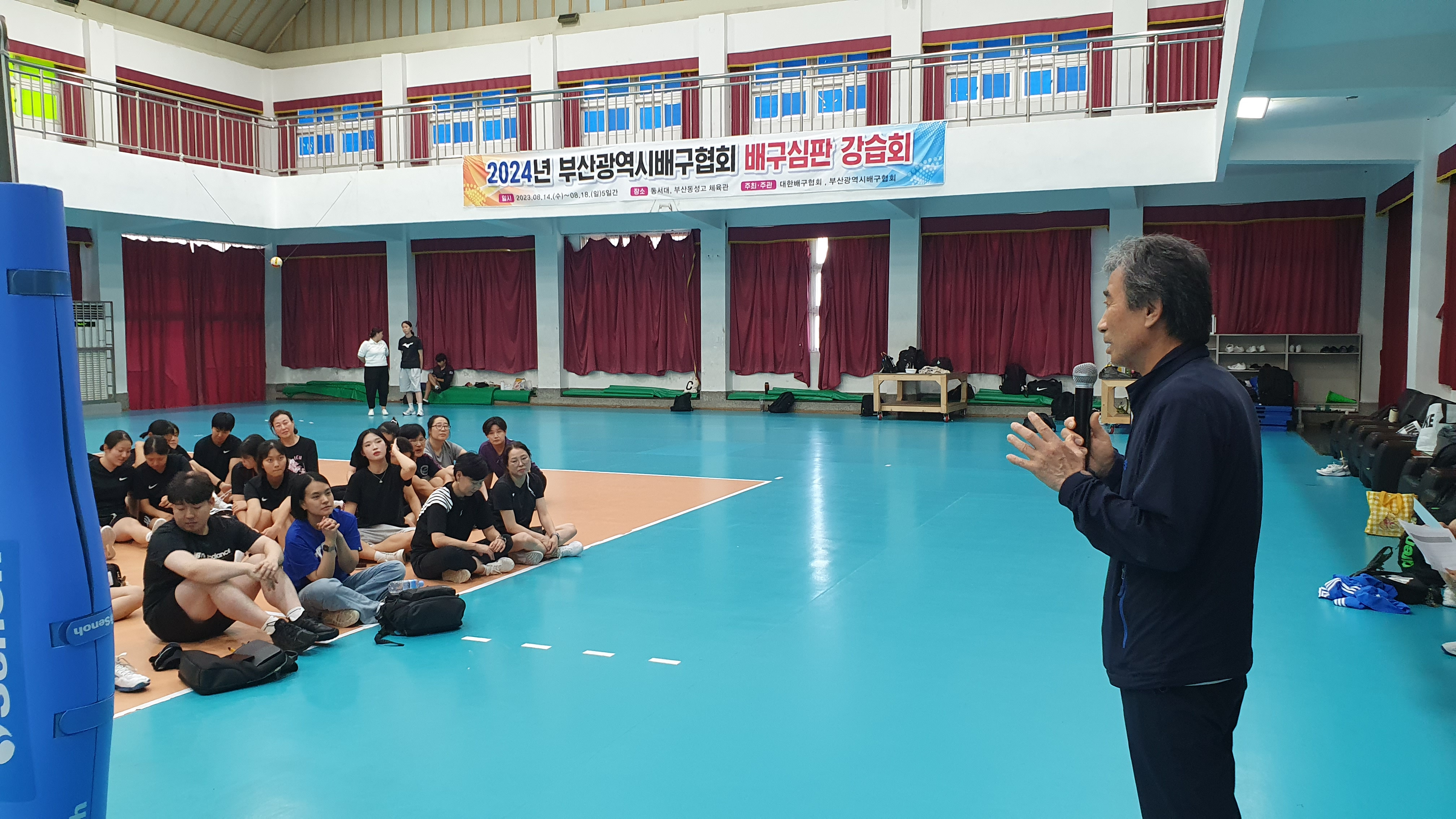 <부산광역시배구협회 김상수전무님 강습회개요 설명>