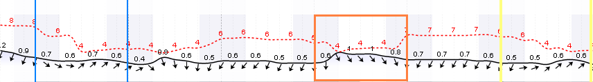 금요일 오전부터 남서풍이 불다 정오때 거스트가 절정에 달합니다 ㅋㅋ 18시 이후로는 풍향(화살표arrow)이 북동으로 돌아서서 토요일 정오쯤까지 유지됩니다. 풍속wind는 5~6~4, 거스트gust는 6~8~4로 가는군요. wind speed, gust 통틀어서 5~8m/s 바람이 분다고 하기도 합니다. 그래프로 보니 한 눈에 들어와서 좋죠? 각 데이터 항목만 보면 흐름flow가 보여서 일목요연합니다. ㅋㅋ