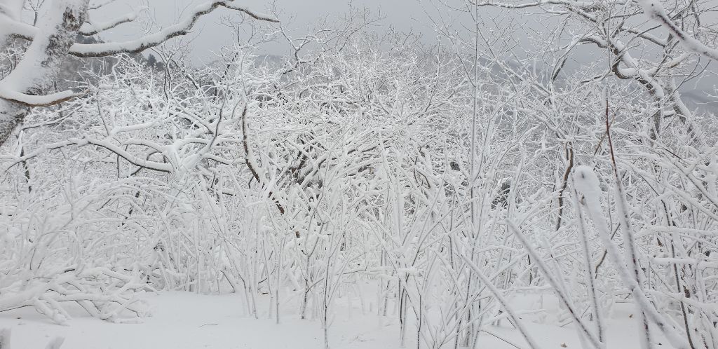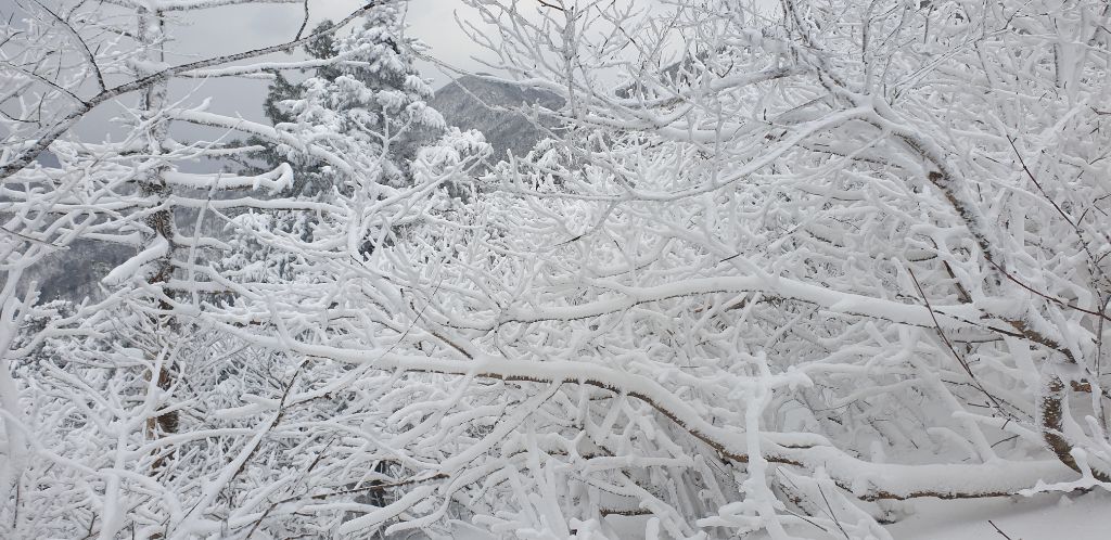 나무가지에는 하얀 설화가 만발하여 우리들을 반겨줍니다