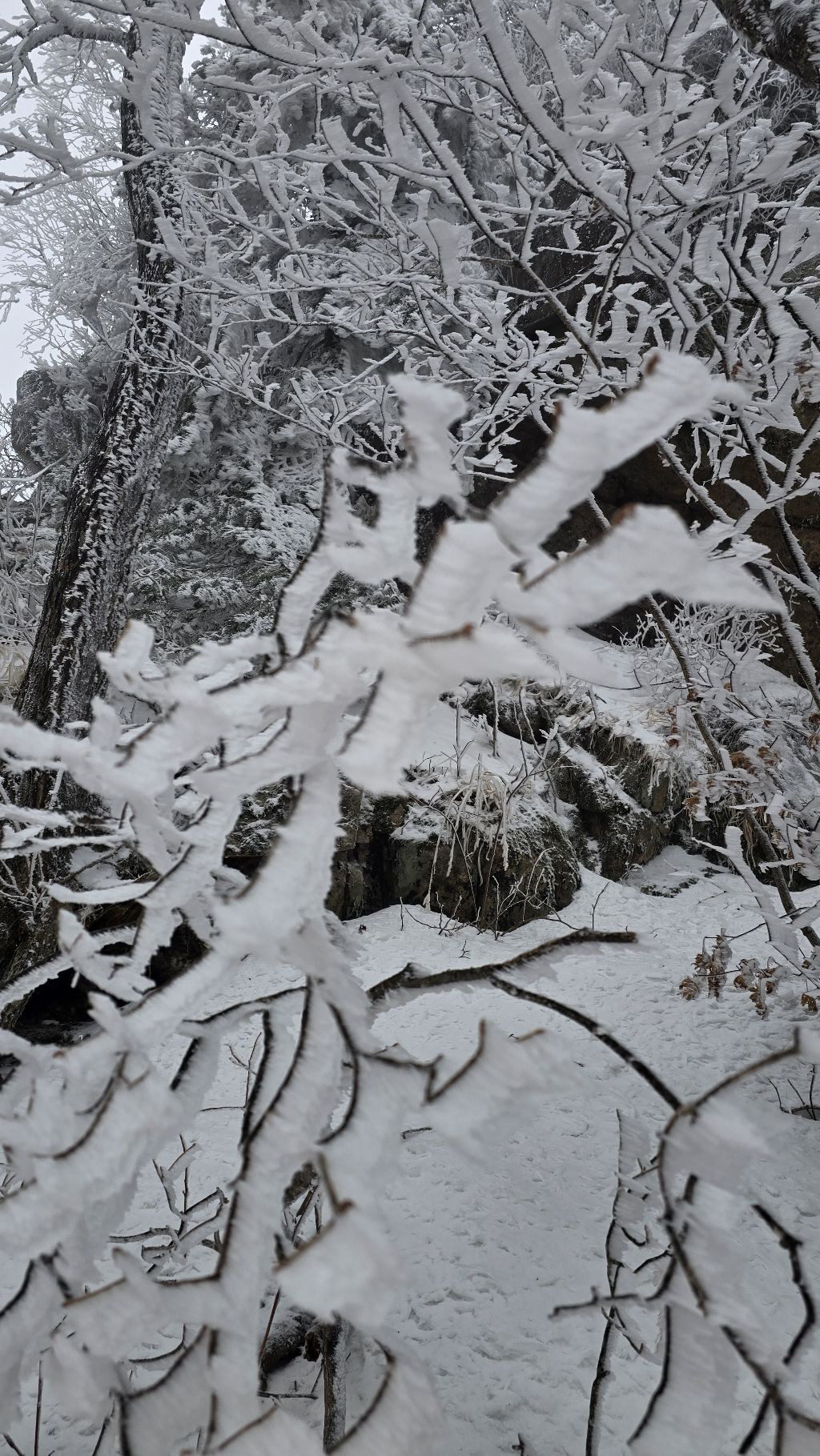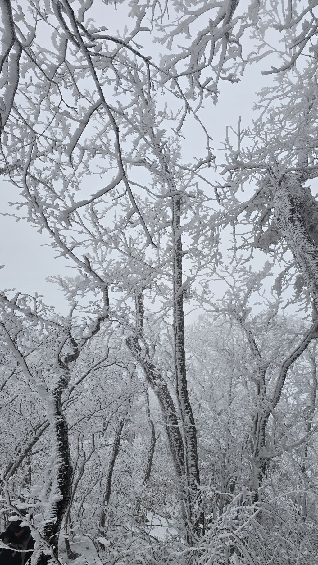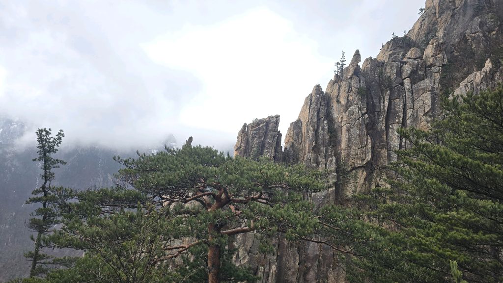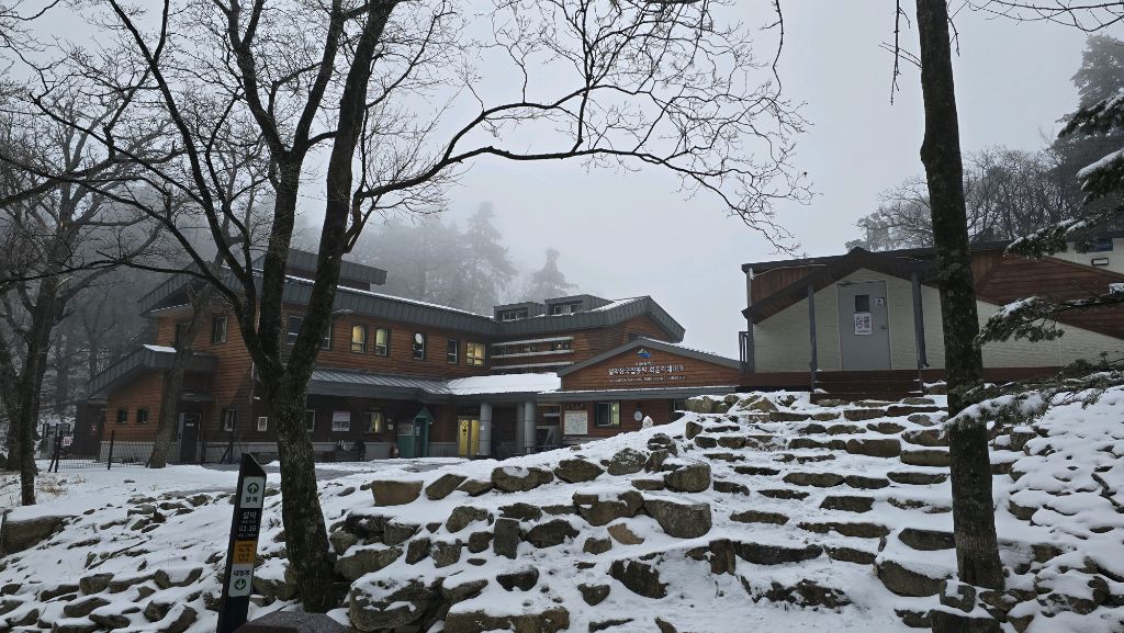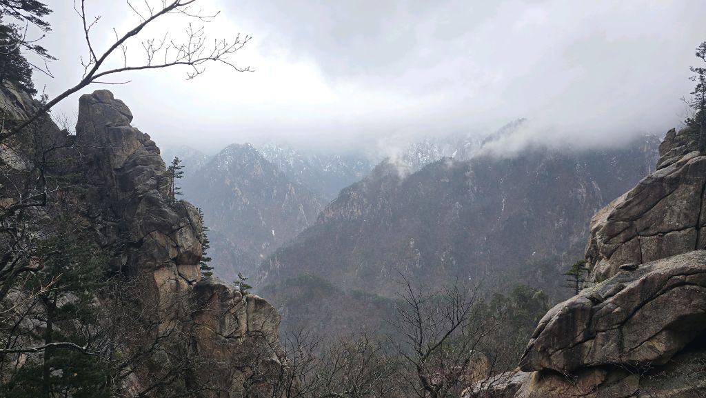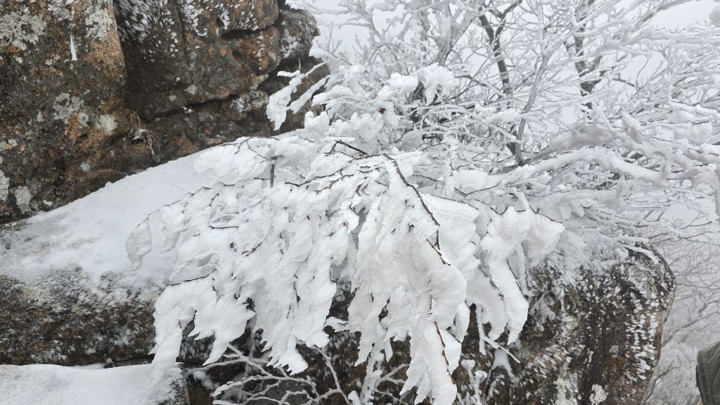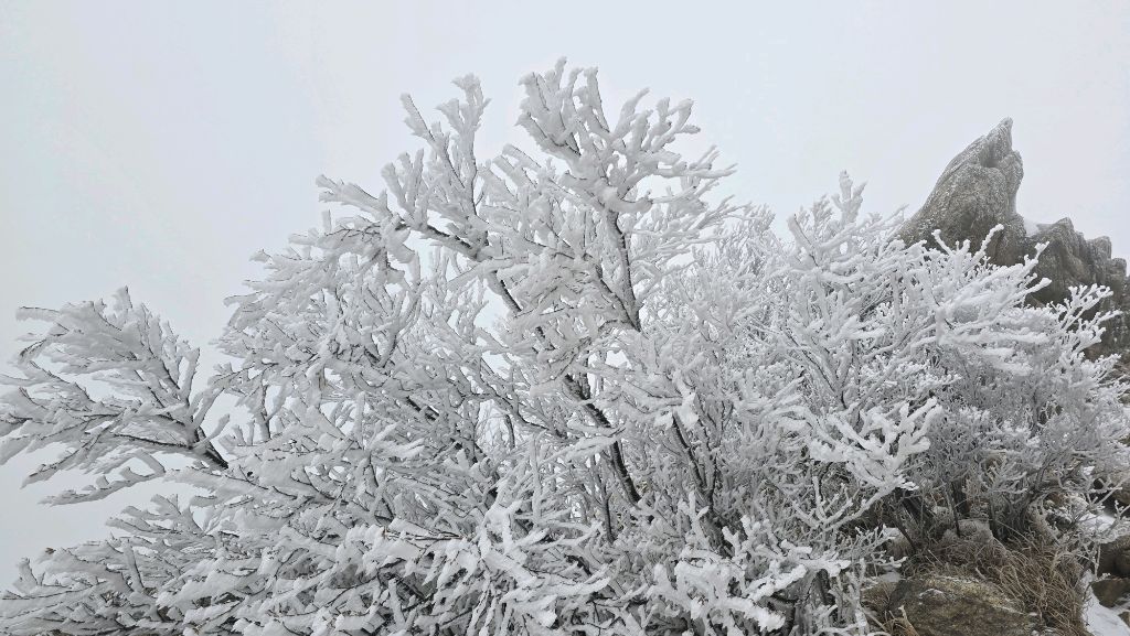 오색에서 04시 출발 빗방울이 조금씩 덜어지고 있지만 산행 시작 700고지 부터는 바닥이 얼어 아이젠 착용하고 산행 습도가 높아 상고대 볼 생각에 한번 쉬지도 않고 정상에 도착한다 하얗게 얼어붙은 정상석 바라보고 바로 회운각대피소까지 달려가 아침으로 빵 한조각이랑 사과 반쪽 먹고 어디로 가야하나 걱정도 잠시 공룡능선으로 중간중간 하얀 눈길에 상고대까지 눈이 즐겁다 비록 파란 하늘과 풍경은 볼 수 없었지민 나무마다 상고대 주렁주렁 눈꽃이랑 상고다 덕분에 하루 즐기고 갑니다
