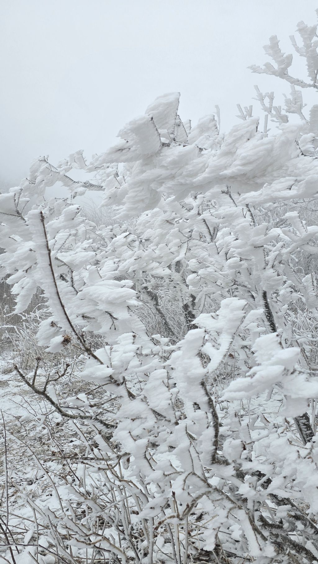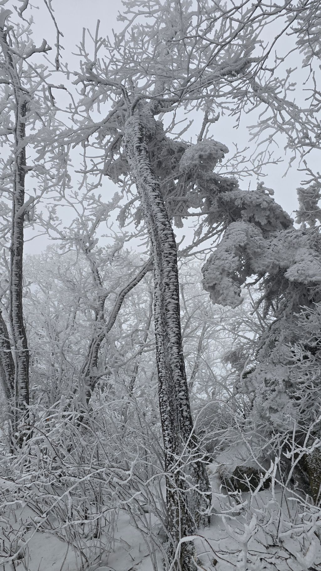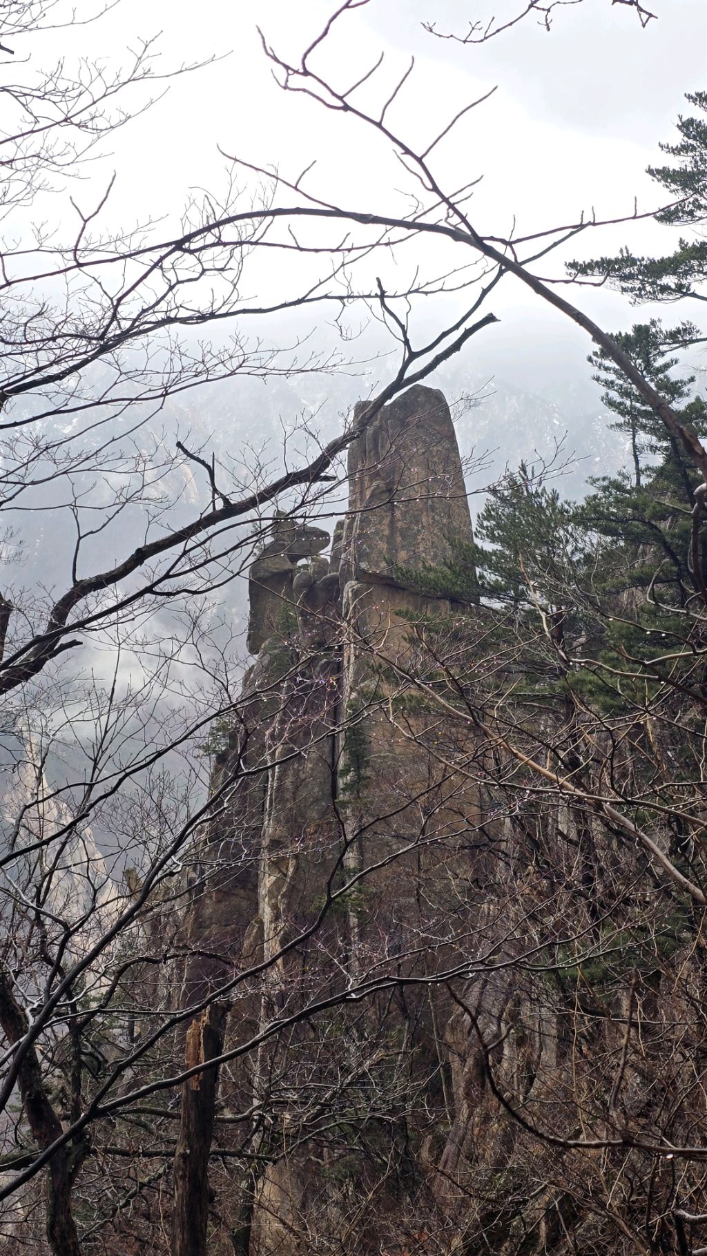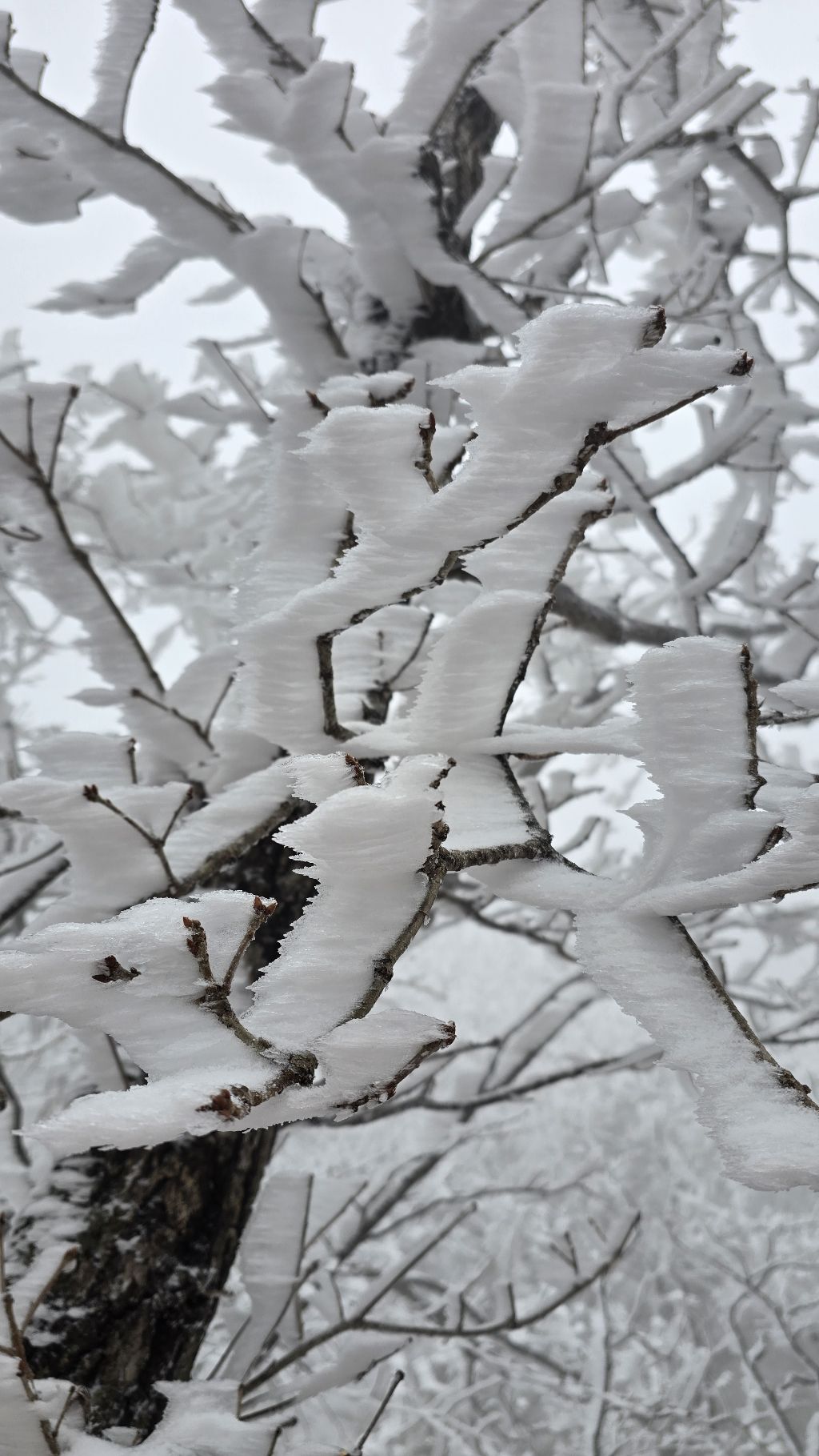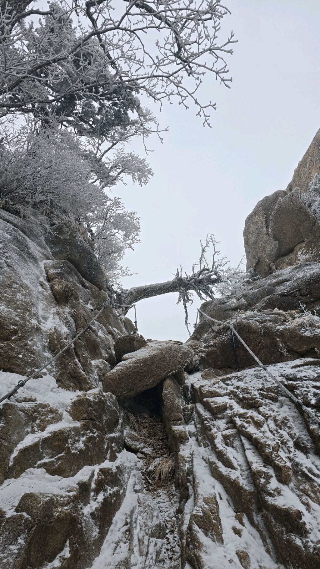 오색에서 04시 출발 빗방울이 조금씩 덜어지고 있지만 산행 시작 700고지 부터는 바닥이 얼어 아이젠 착용하고 산행 습도가 높아 상고대 볼 생각에 한번 쉬지도 않고 정상에 도착한다 하얗게 얼어붙은 정상석 바라보고 바로 회운각대피소까지 달려가 아침으로 빵 한조각이랑 사과 반쪽 먹고 어디로 가야하나 걱정도 잠시 공룡능선으로 중간중간 하얀 눈길에 상고대까지 눈이 즐겁다 비록 파란 하늘과 풍경은 볼 수 없었지민 나무마다 상고대 주렁주렁 눈꽃이랑 상고다 덕분에 하루 즐기고 갑니다