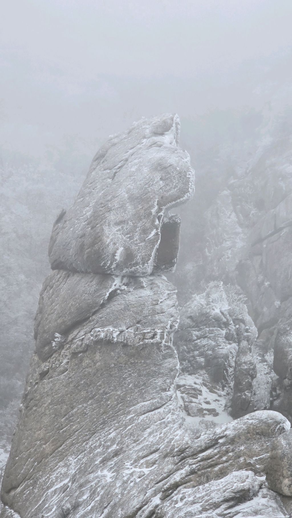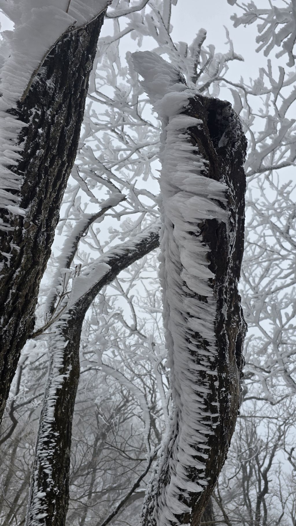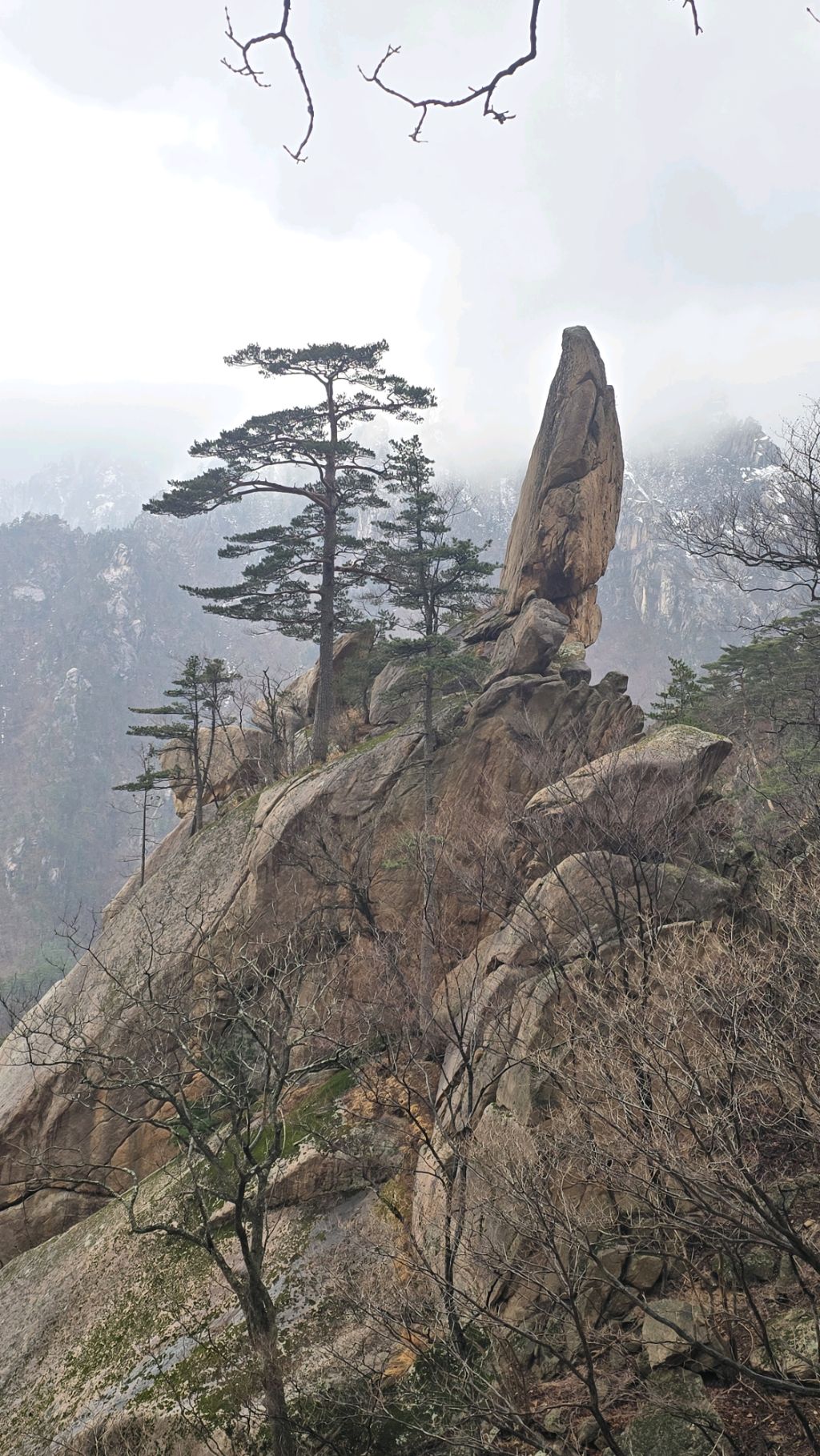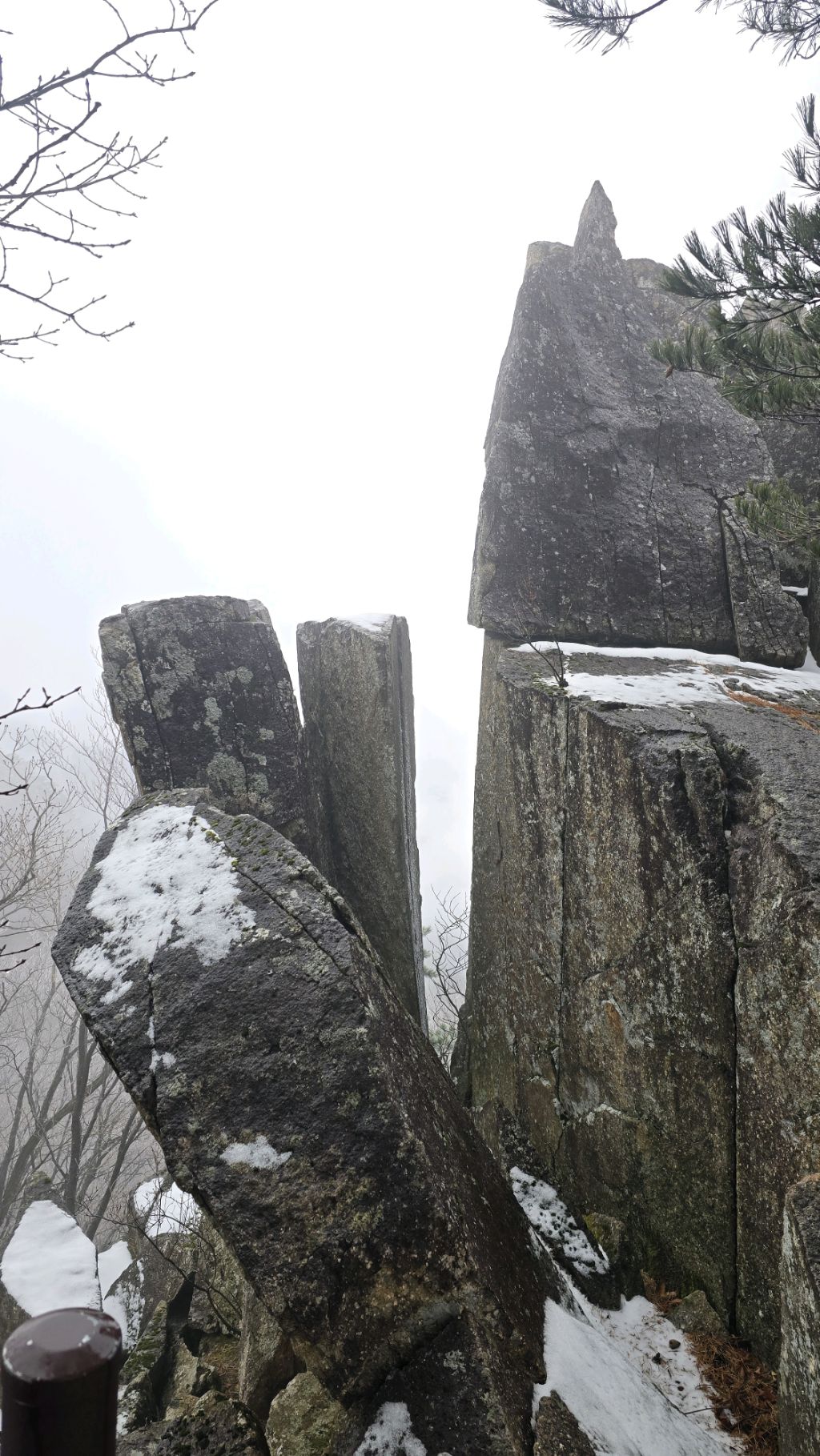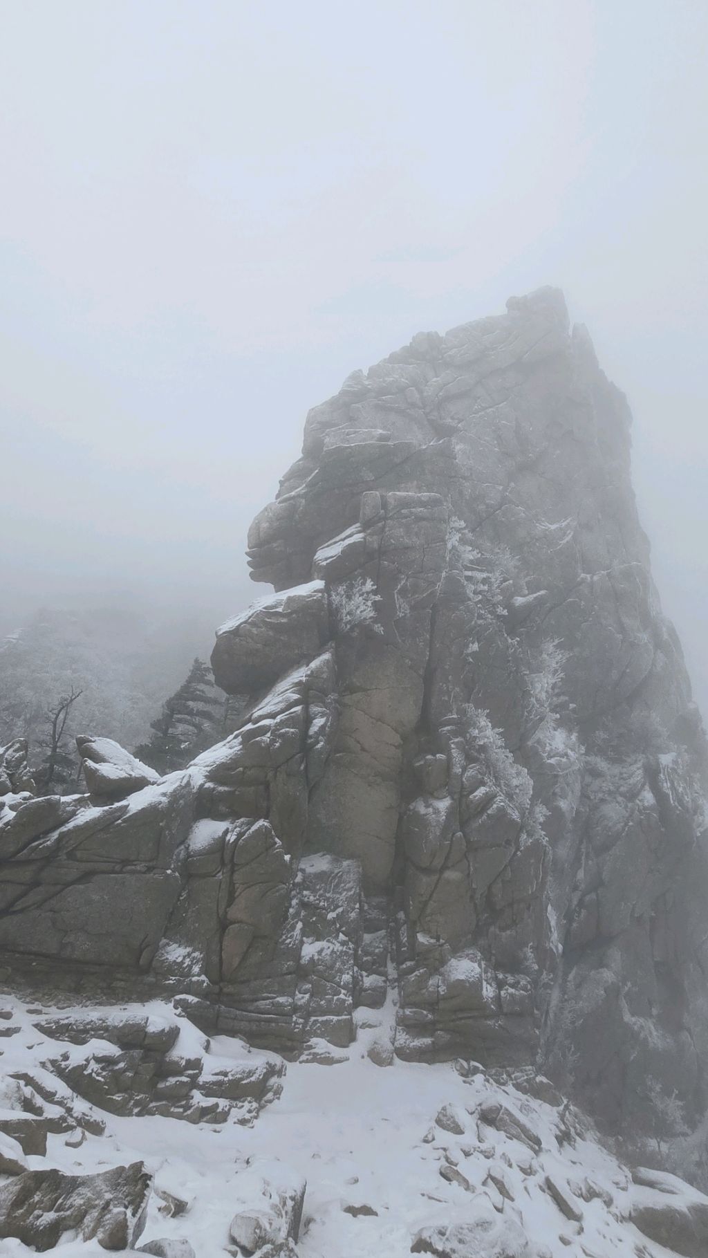 오색에서 04시 출발 빗방울이 조금씩 덜어지고 있지만 산행 시작 700고지 부터는 바닥이 얼어 아이젠 착용하고 산행 습도가 높아 상고대 볼 생각에 한번 쉬지도 않고 정상에 도착한다 하얗게 얼어붙은 정상석 바라보고 바로 회운각대피소까지 달려가 아침으로 빵 한조각이랑 사과 반쪽 먹고 어디로 가야하나 걱정도 잠시 공룡능선으로 중간중간 하얀 눈길에 상고대까지 눈이 즐겁다 비록 파란 하늘과 풍경은 볼 수 없었지민 나무마다 상고대 주렁주렁 눈꽃이랑 상고다 덕분에 하루 즐기고 갑니다