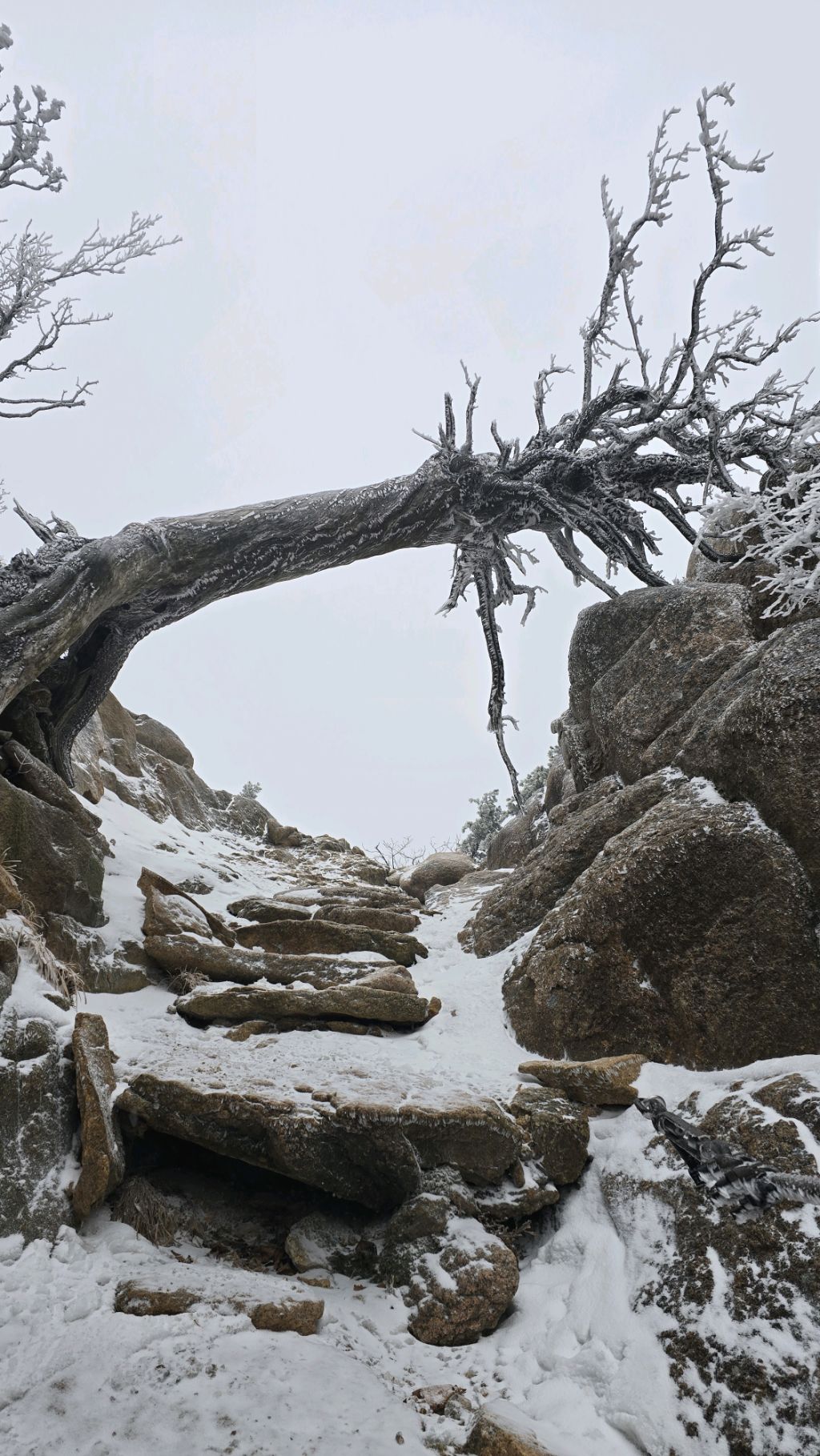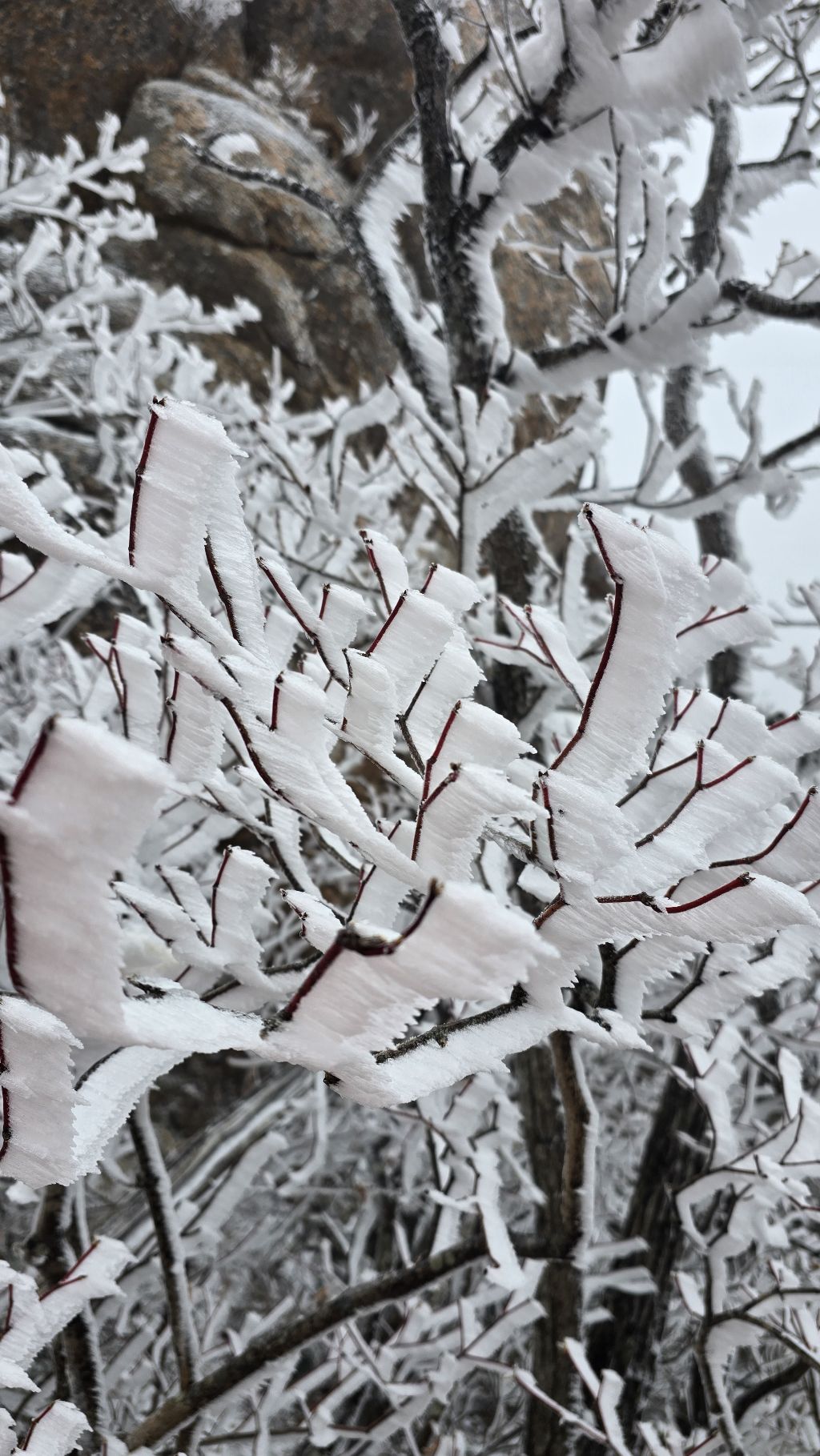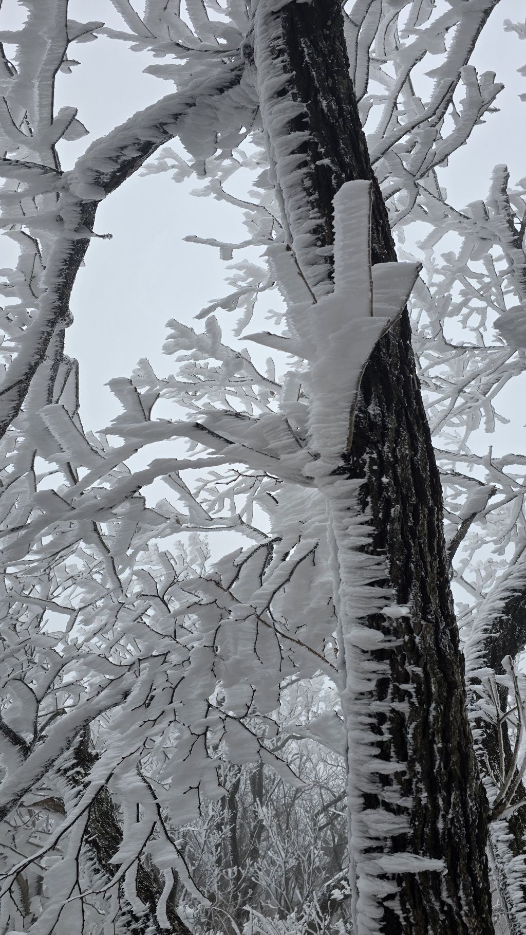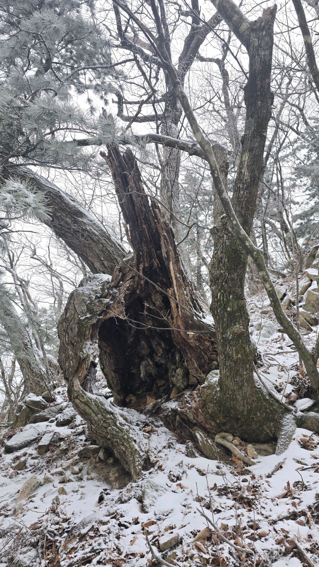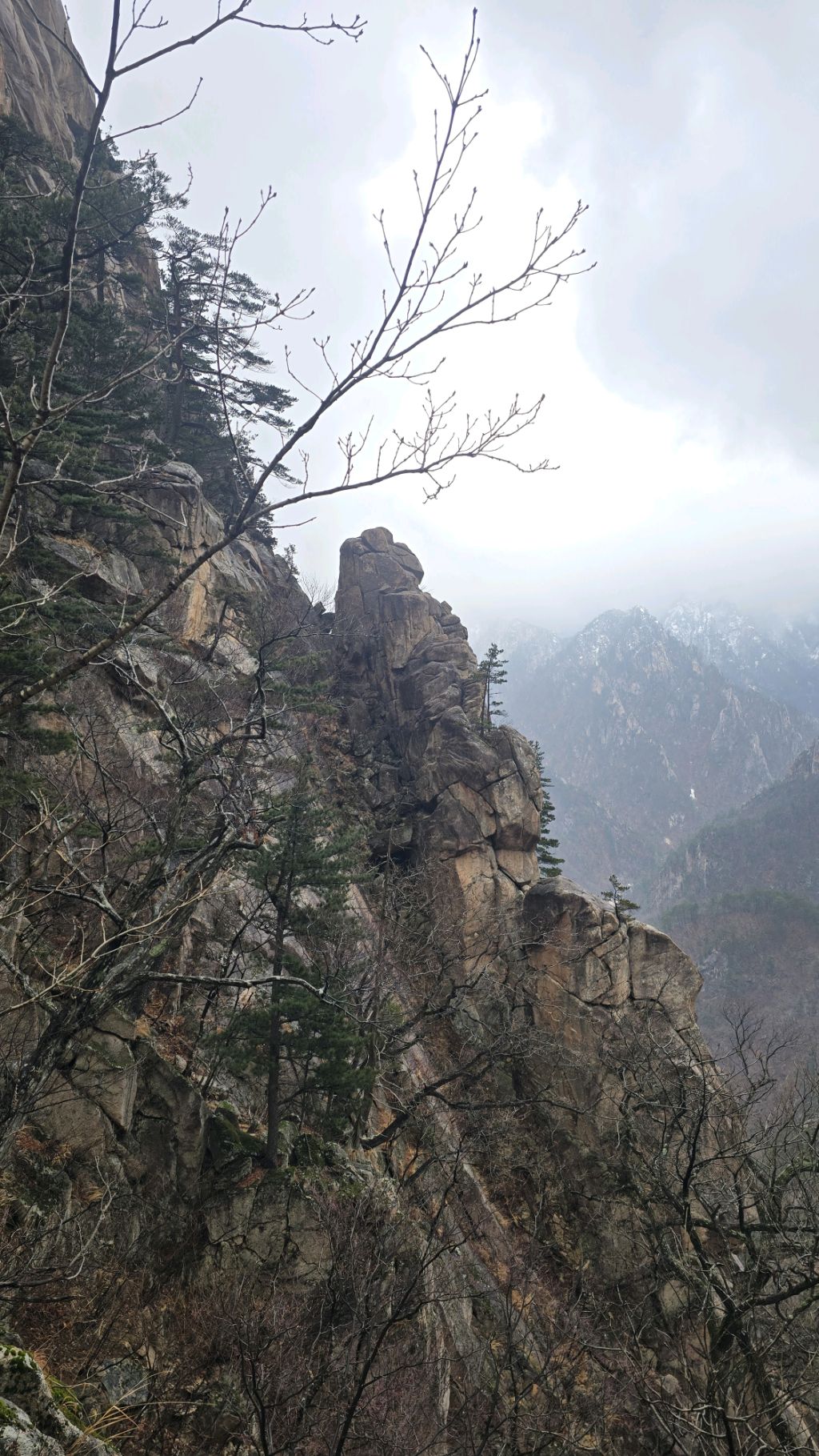 오색에서 04시 출발 빗방울이 조금씩 덜어지고 있지만 산행 시작 700고지 부터는 바닥이 얼어 아이젠 착용하고 산행 습도가 높아 상고대 볼 생각에 한번 쉬지도 않고 정상에 도착한다 하얗게 얼어붙은 정상석 바라보고 바로 회운각대피소까지 달려가 아침으로 빵 한조각이랑 사과 반쪽 먹고 어디로 가야하나 걱정도 잠시 공룡능선으로 중간중간 하얀 눈길에 상고대까지 눈이 즐겁다 비록 파란 하늘과 풍경은 볼 수 없었지민 나무마다 상고대 주렁주렁 눈꽃이랑 상고다 덕분에 하루 즐기고 갑니다