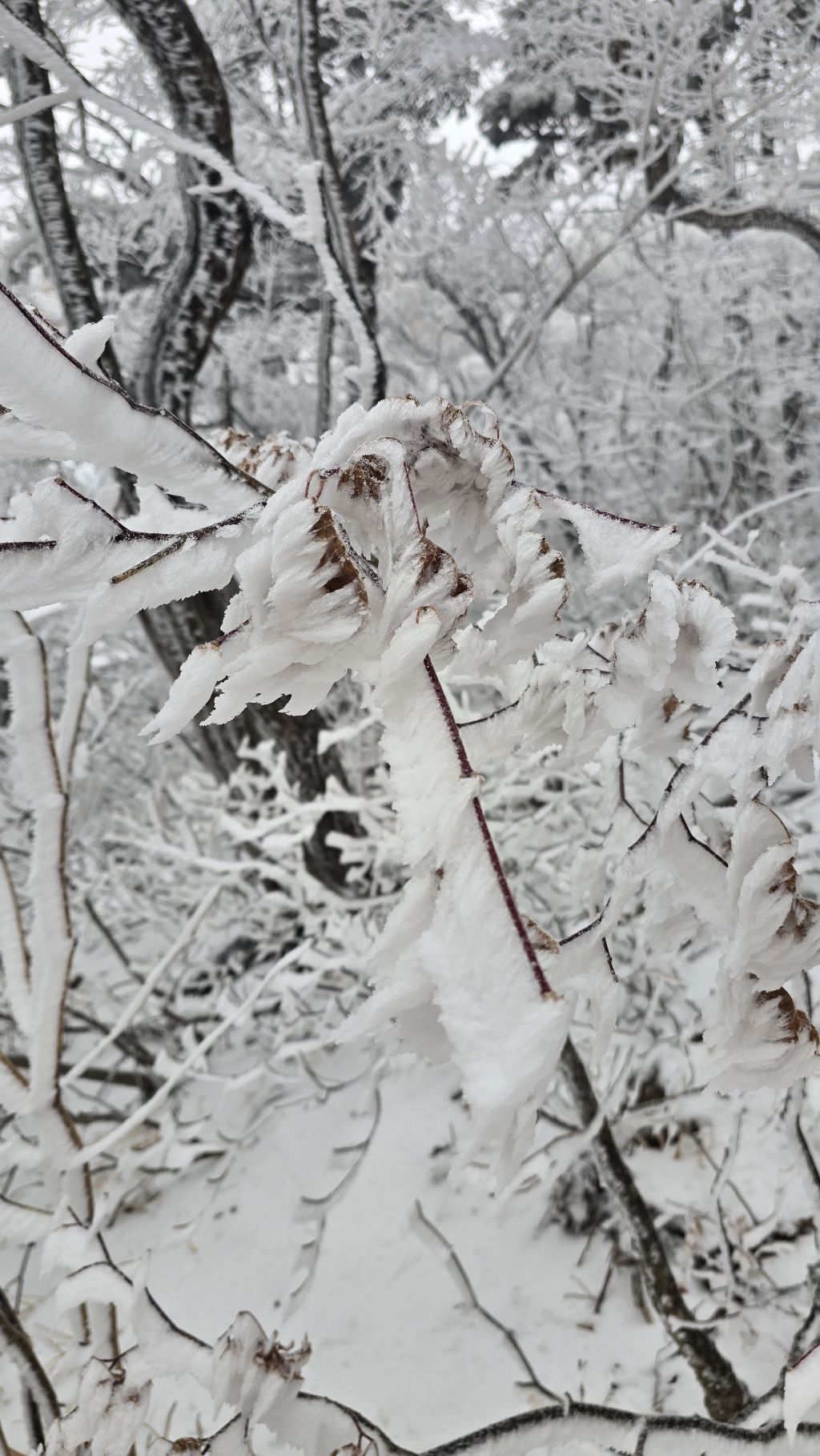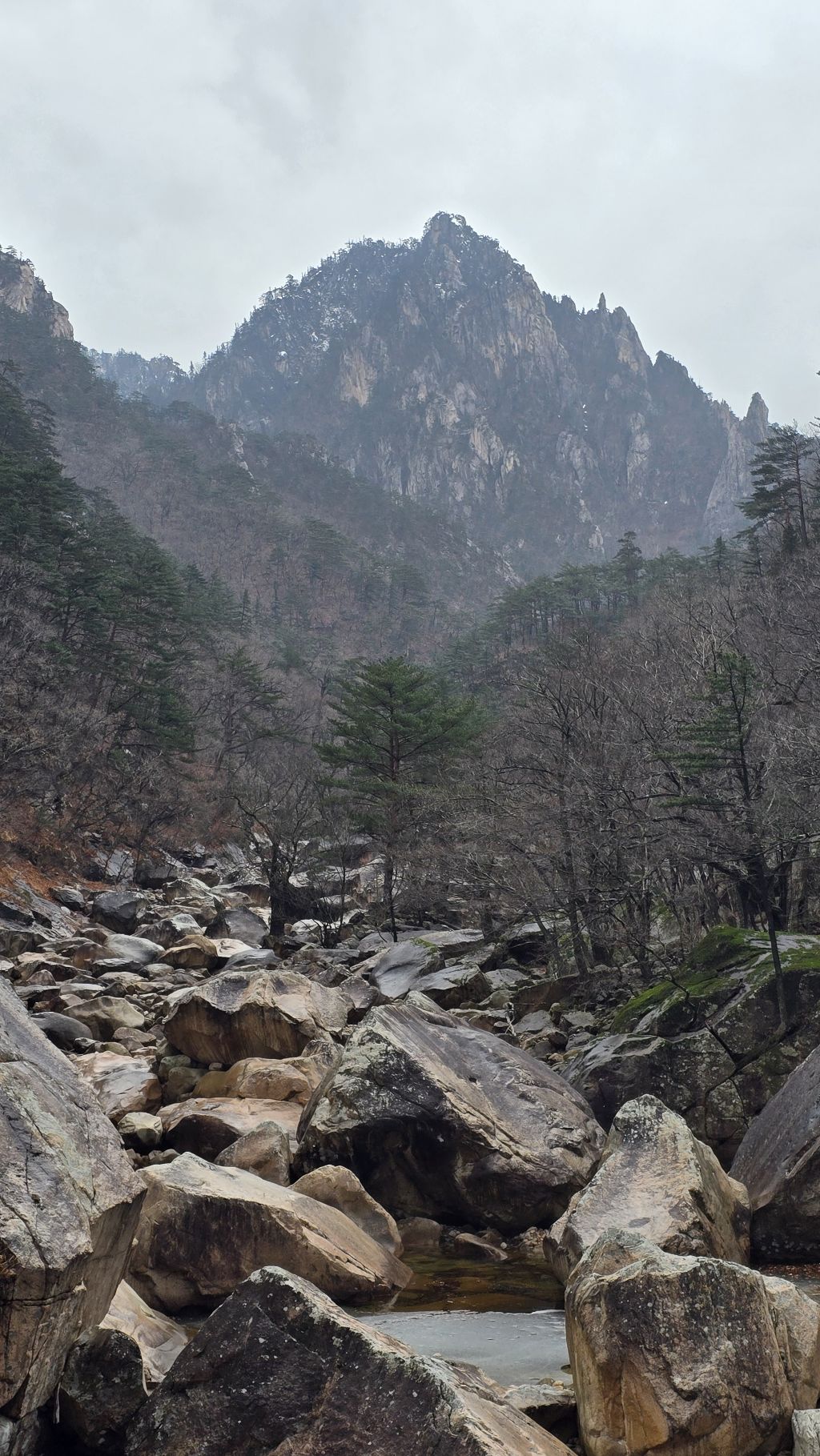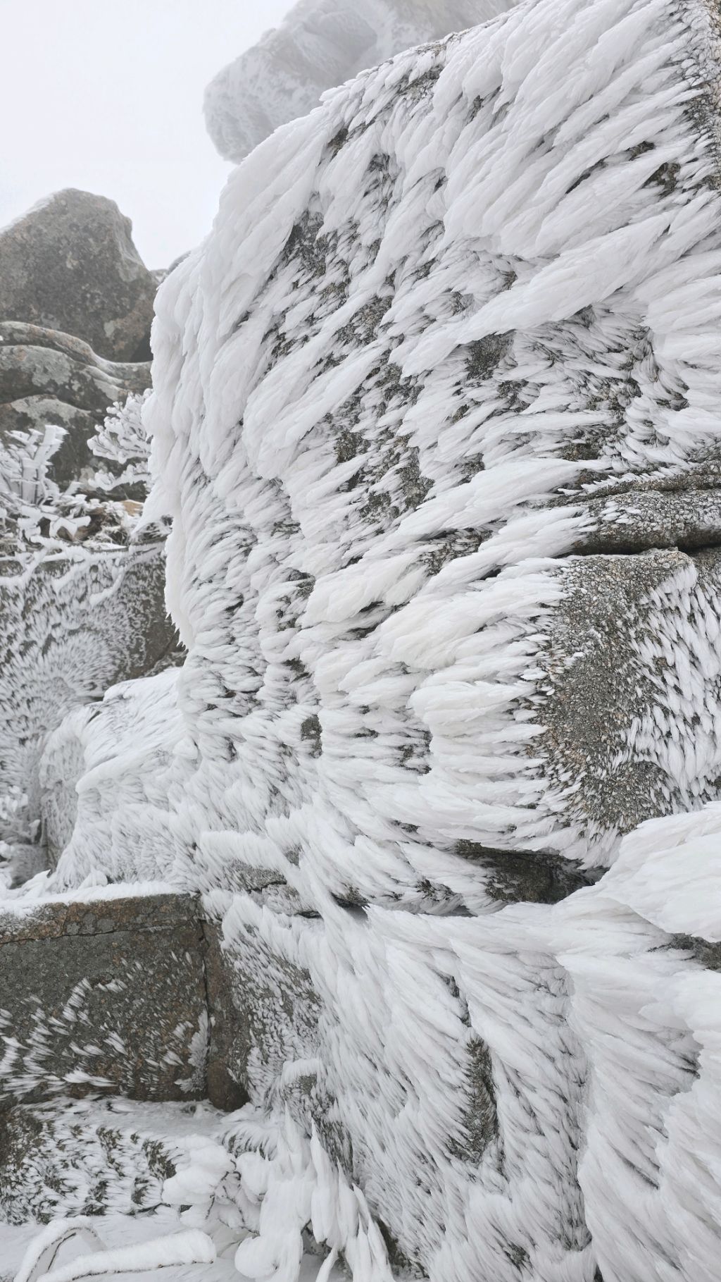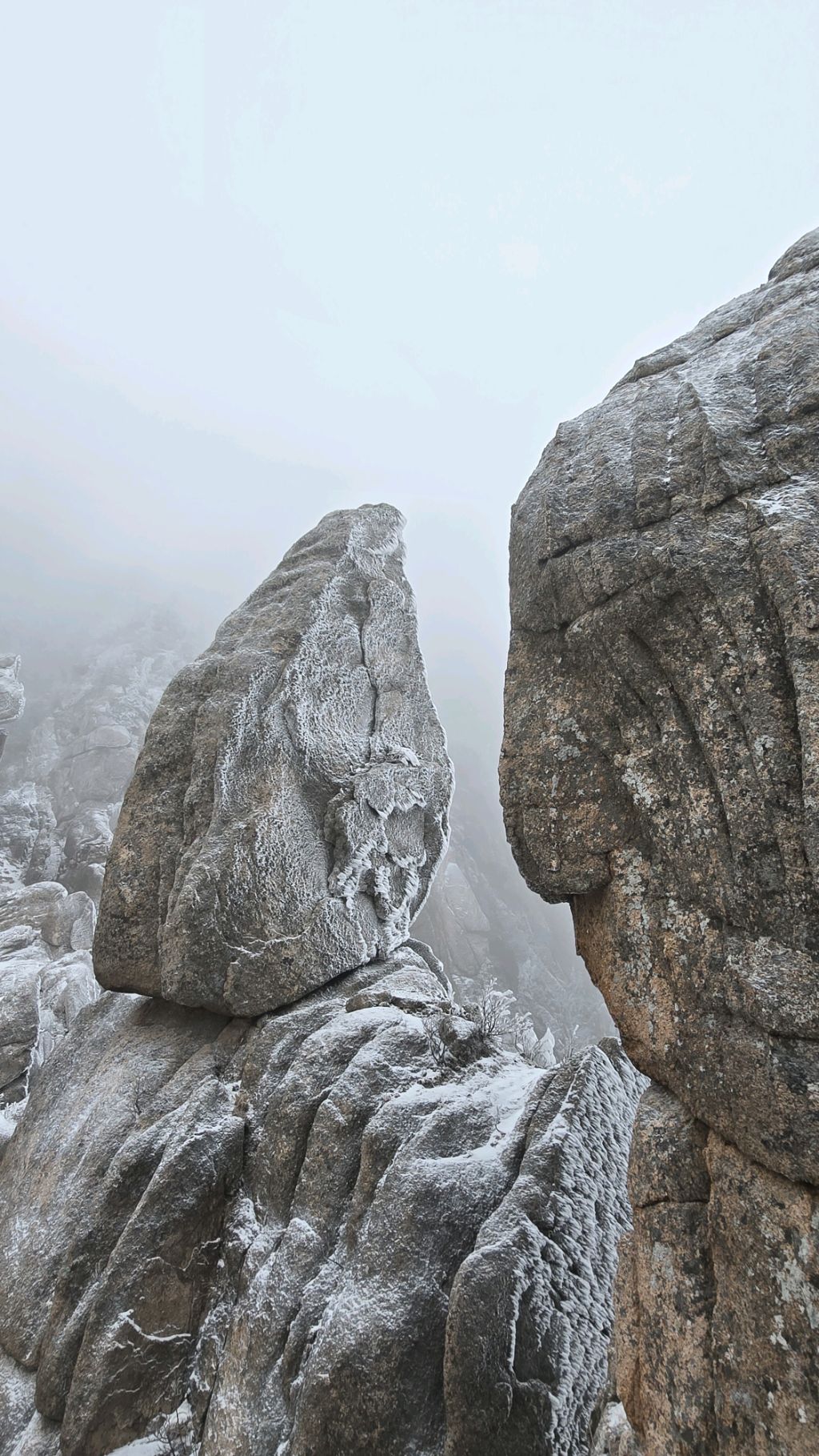 오색에서 04시 출발 빗방울이 조금씩 덜어지고 있지만 산행 시작 700고지 부터는 바닥이 얼어 아이젠 착용하고 산행 습도가 높아 상고대 볼 생각에 한번 쉬지도 않고 정상에 도착한다 하얗게 얼어붙은 정상석 바라보고 바로 회운각대피소까지 달려가 아침으로 빵 한조각이랑 사과 반쪽 먹고 어디로 가야하나 걱정도 잠시 공룡능선으로 중간중간 하얀 눈길에 상고대까지 눈이 즐겁다 비록 파란 하늘과 풍경은 볼 수 없었지민 나무마다 상고대 주렁주렁 눈꽃이랑 상고다 덕분에 하루 즐기고 갑니다