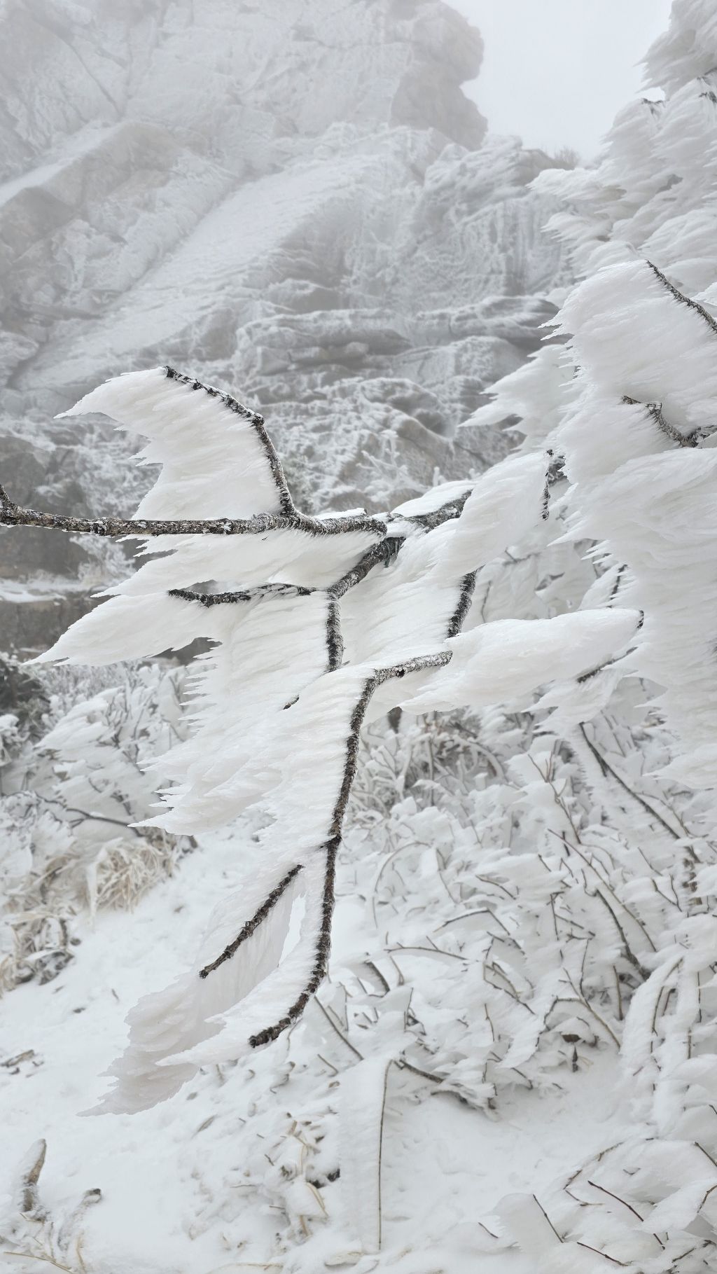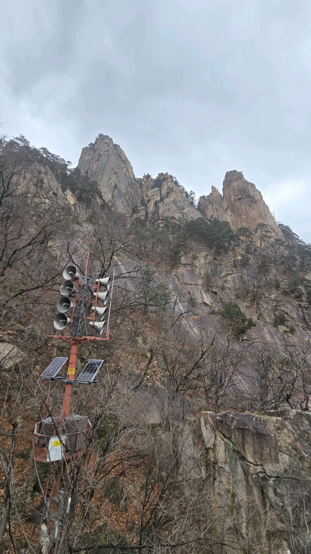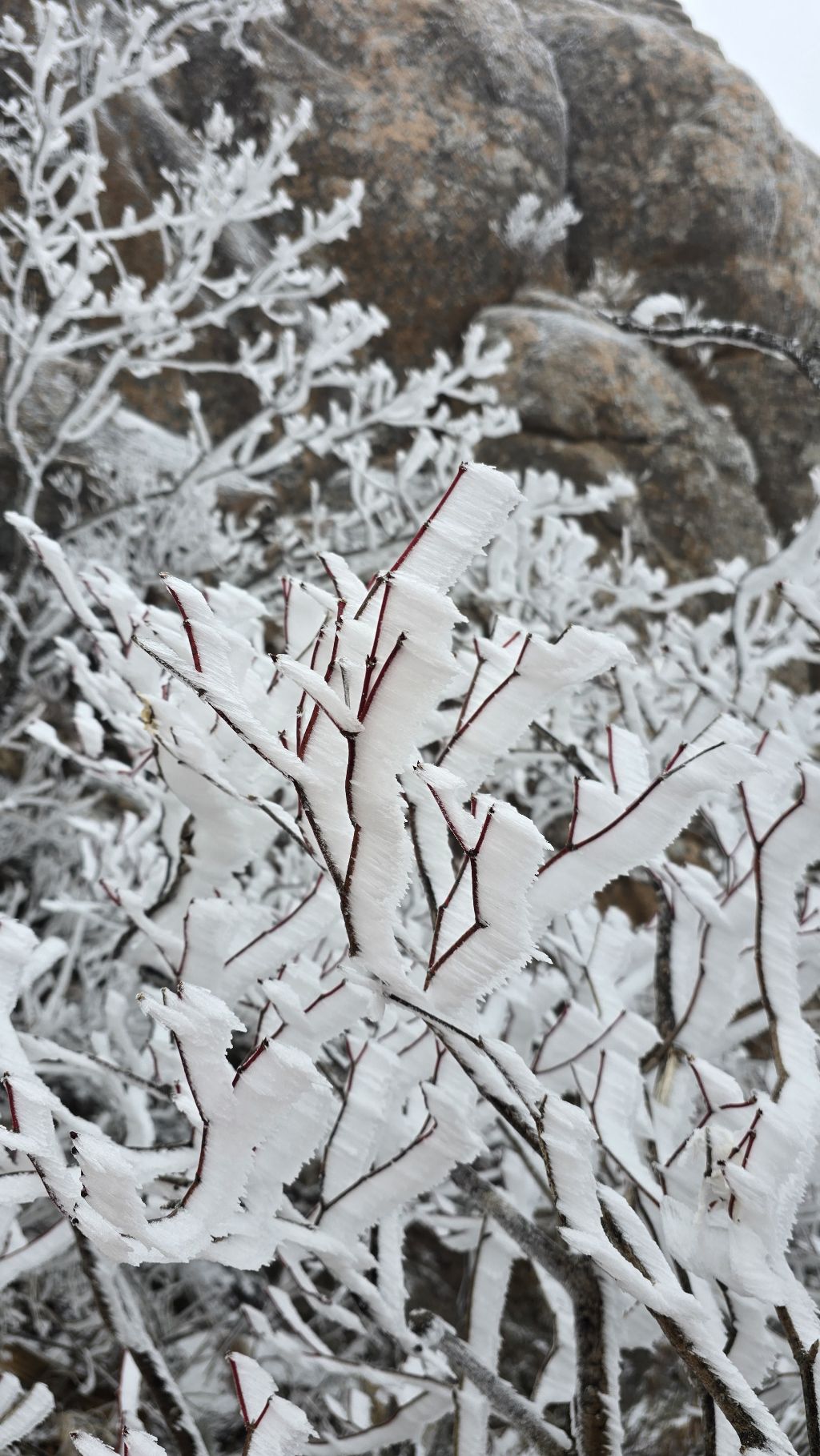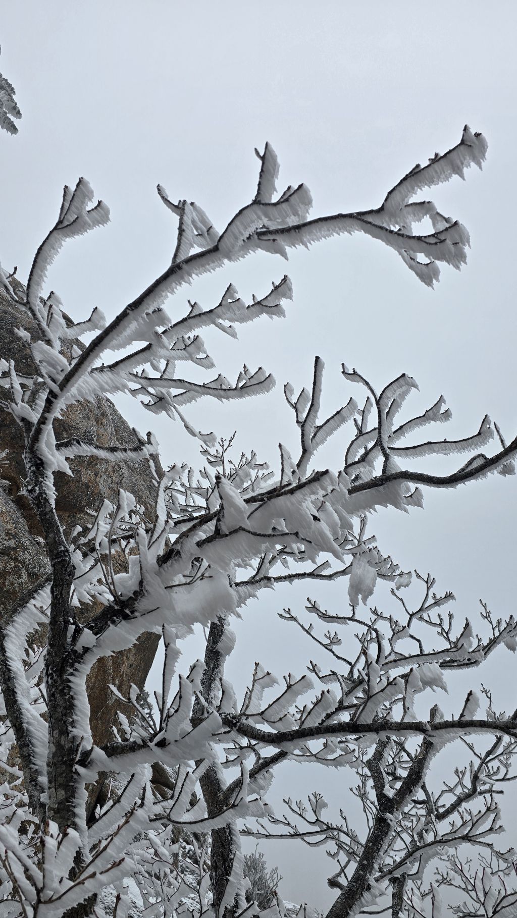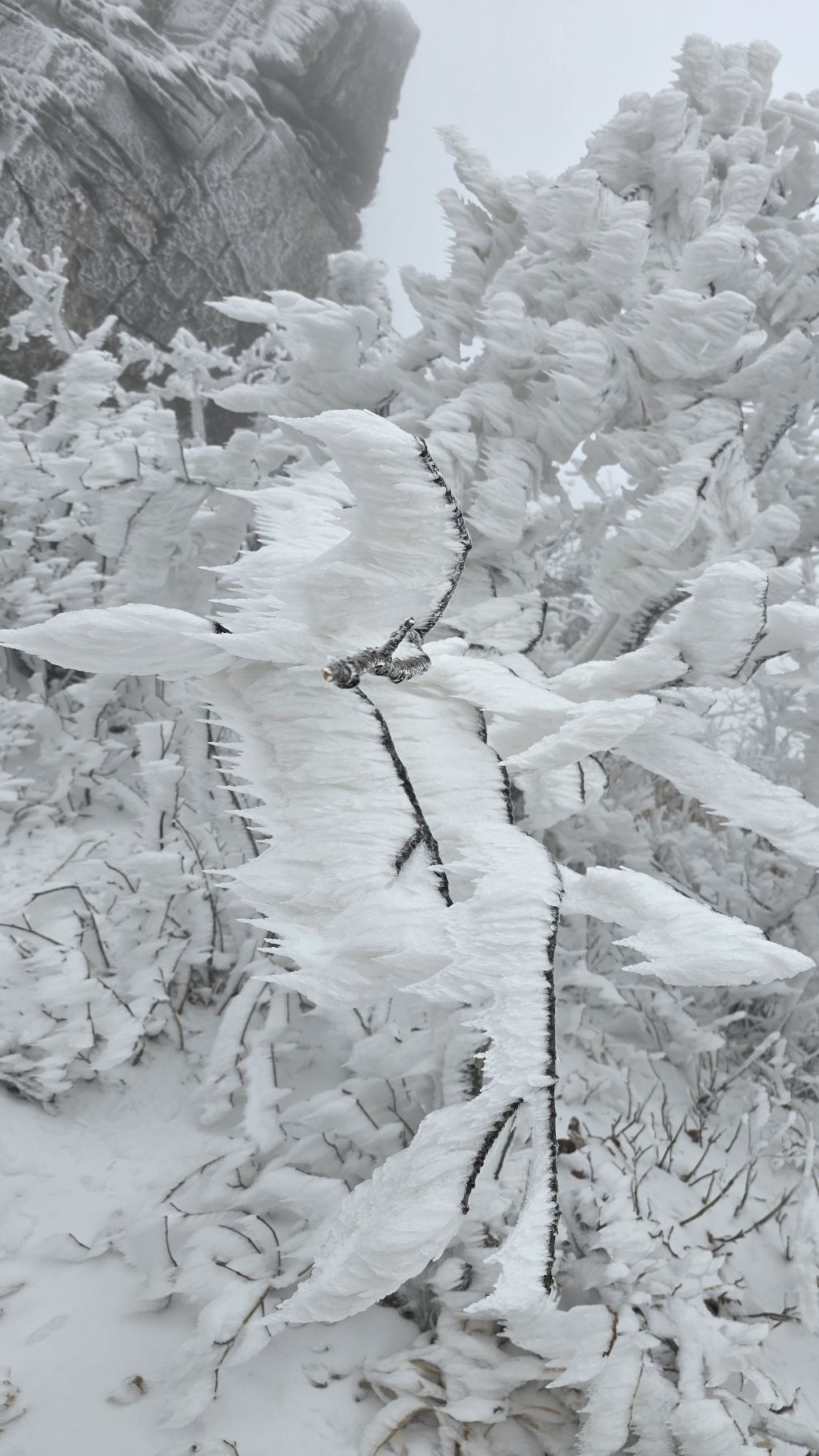 오색에서 04시 출발 빗방울이 조금씩 덜어지고 있지만 산행 시작 700고지 부터는 바닥이 얼어 아이젠 착용하고 산행 습도가 높아 상고대 볼 생각에 한번 쉬지도 않고 정상에 도착한다 하얗게 얼어붙은 정상석 바라보고 바로 회운각대피소까지 달려가 아침으로 빵 한조각이랑 사과 반쪽 먹고 어디로 가야하나 걱정도 잠시 공룡능선으로 중간중간 하얀 눈길에 상고대까지 눈이 즐겁다 비록 파란 하늘과 풍경은 볼 수 없었지민 나무마다 상고대 주렁주렁 눈꽃이랑 상고다 덕분에 하루 즐기고 갑니다